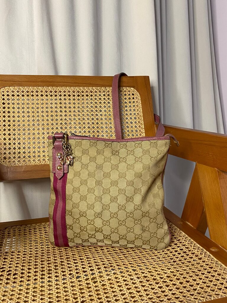Gucci Bicolor GG Crossbody Bag W/ Bag Charm