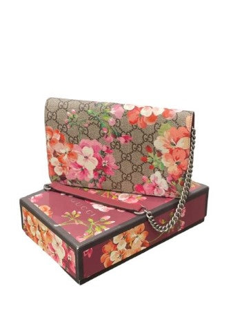 Gucci Bicolor GG Monogram Blooms Chain Wallet