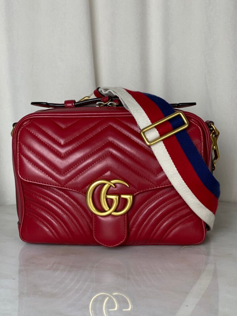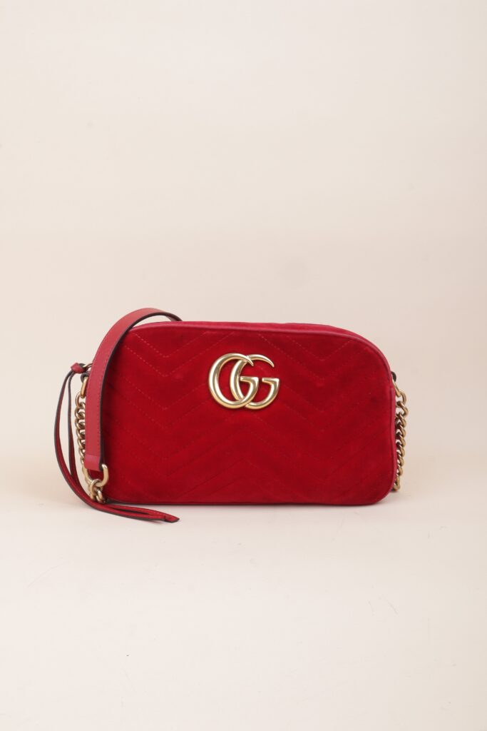 Gucci Red GG Velvet Marmont Small Crossbody Bag