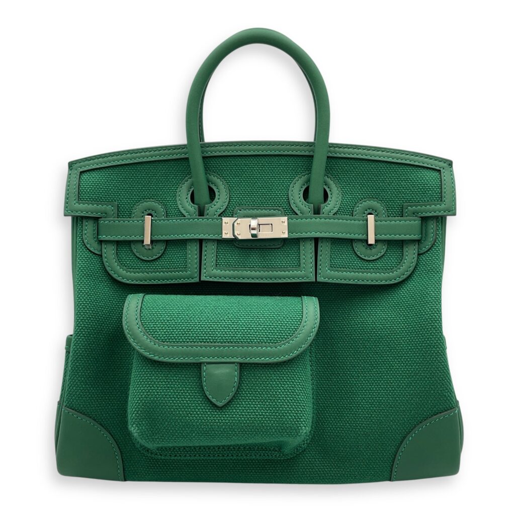 Cargo Birkin 25 Vert Moyen in Swift/Toile, Palladium hardware
