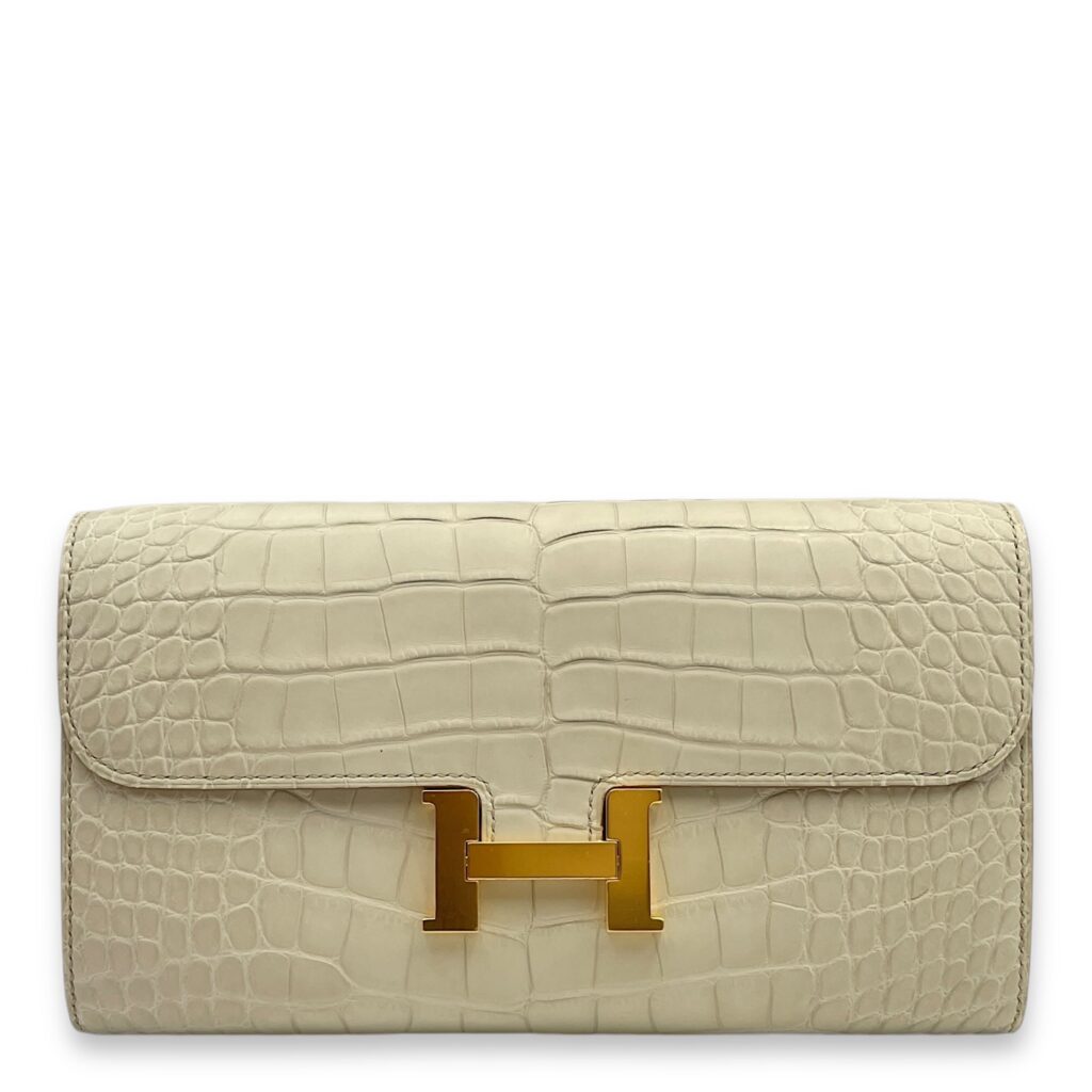 Constance To Go Beton Wallet On Chain in Matte Alligator, Gold hardware