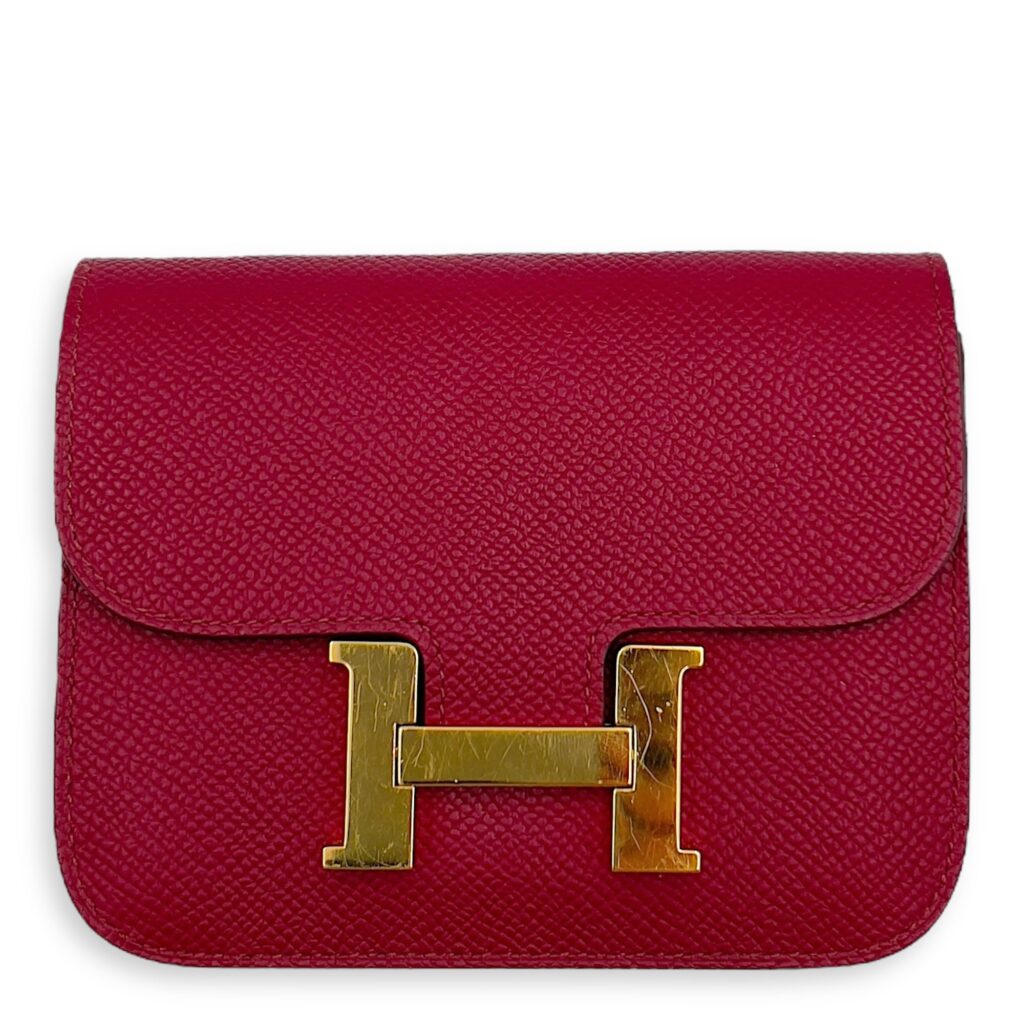 Constance Slim Rouge H/Rose Wallet in Epsom/Lizard, Palladium hardware