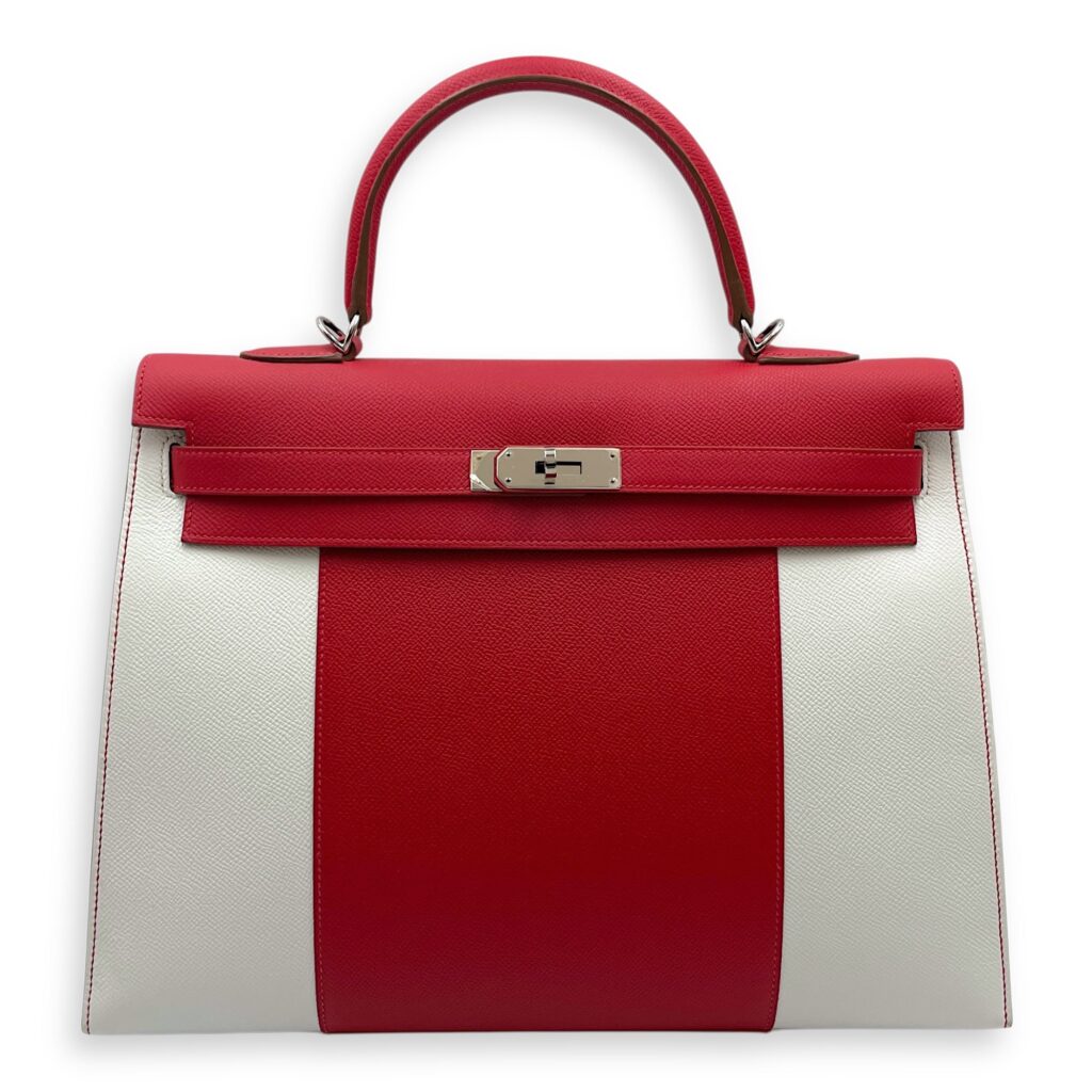 Flag Sellier Kelly 35 Rouge Casaque/Blanc in Epsom, Palladium hardware