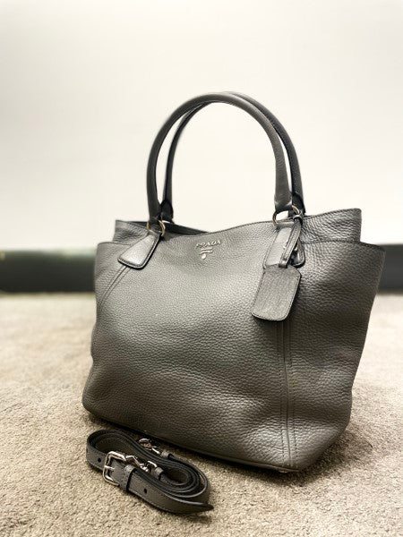 Prada Grey Vitello Daino Tote Bag W/ Charm