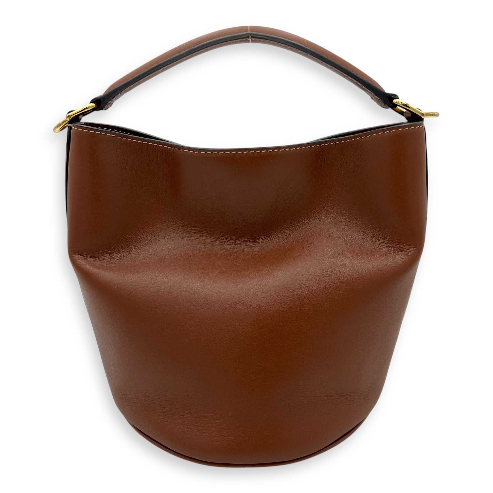 16 Teen Brown Bucket Bag in Calfskin, Gold hardware