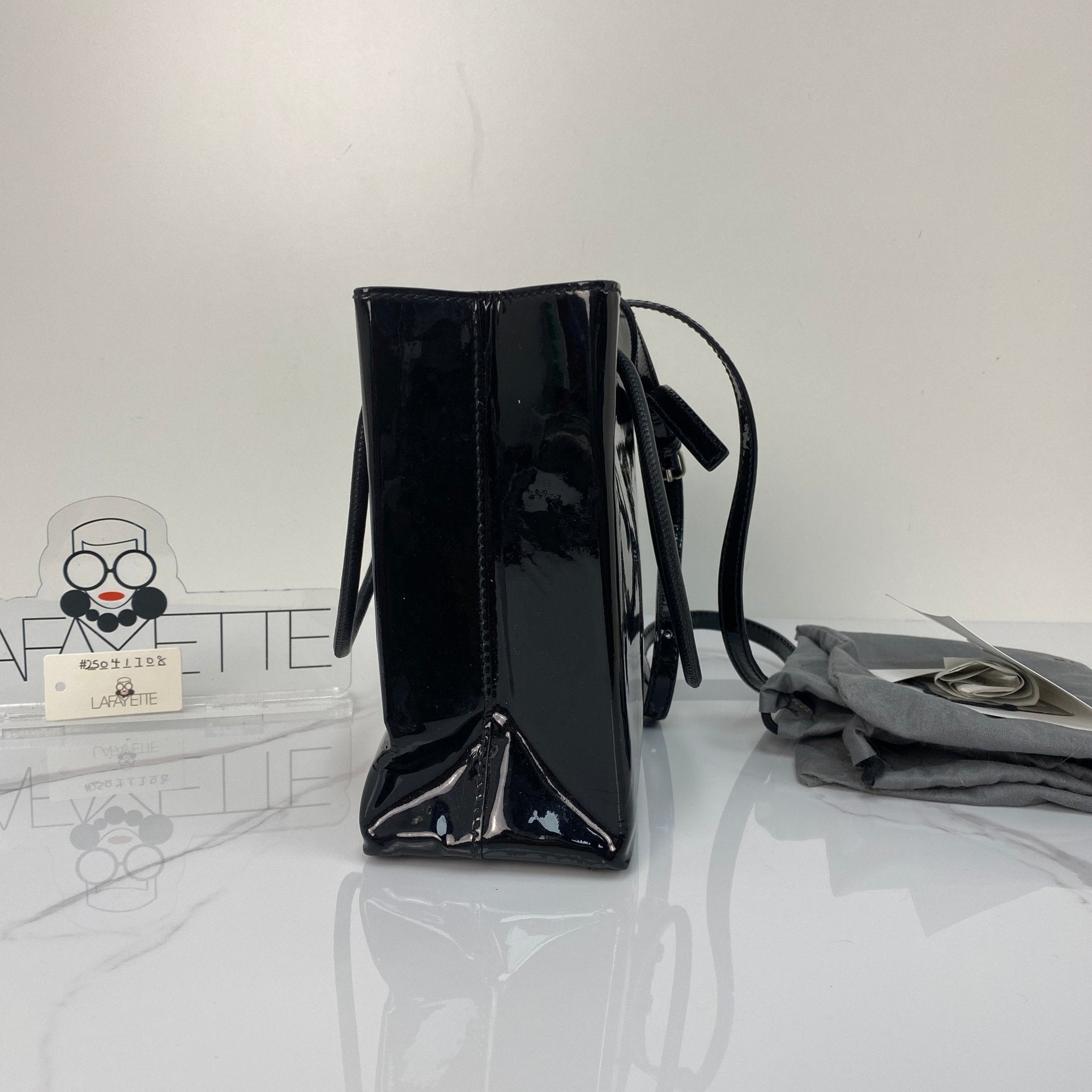The Balenciaga Logo Shopping Tote in black patent leather is the definition of downtown cool. Sharp, glossy, and endlessly functional—it elevates streetwear, suiting, and everything in between.
