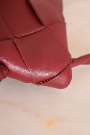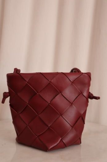 Bottega Veneta Burgundy Intrecciato Clasp Bucket Bag