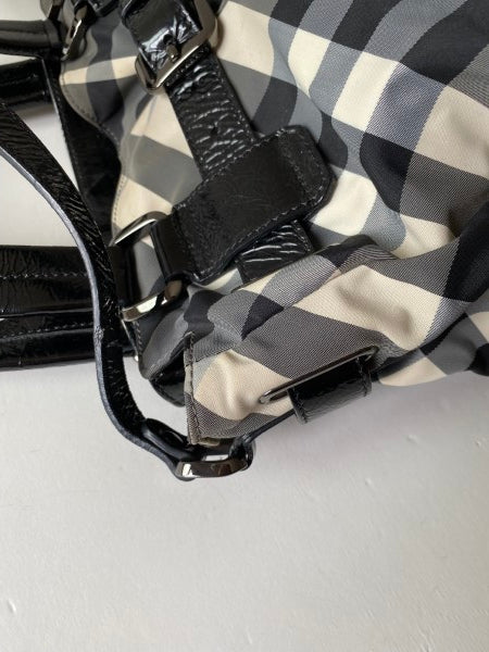 • Material: Black/White Check Nylon with Black Patent Leather Trim