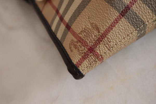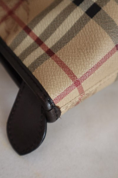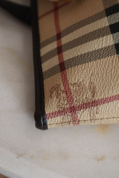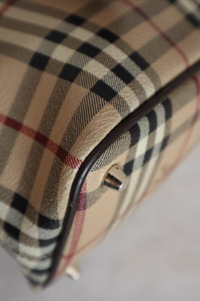 • Material: Beige Haymarket Check Coated Canvas with Brown Leather Trim