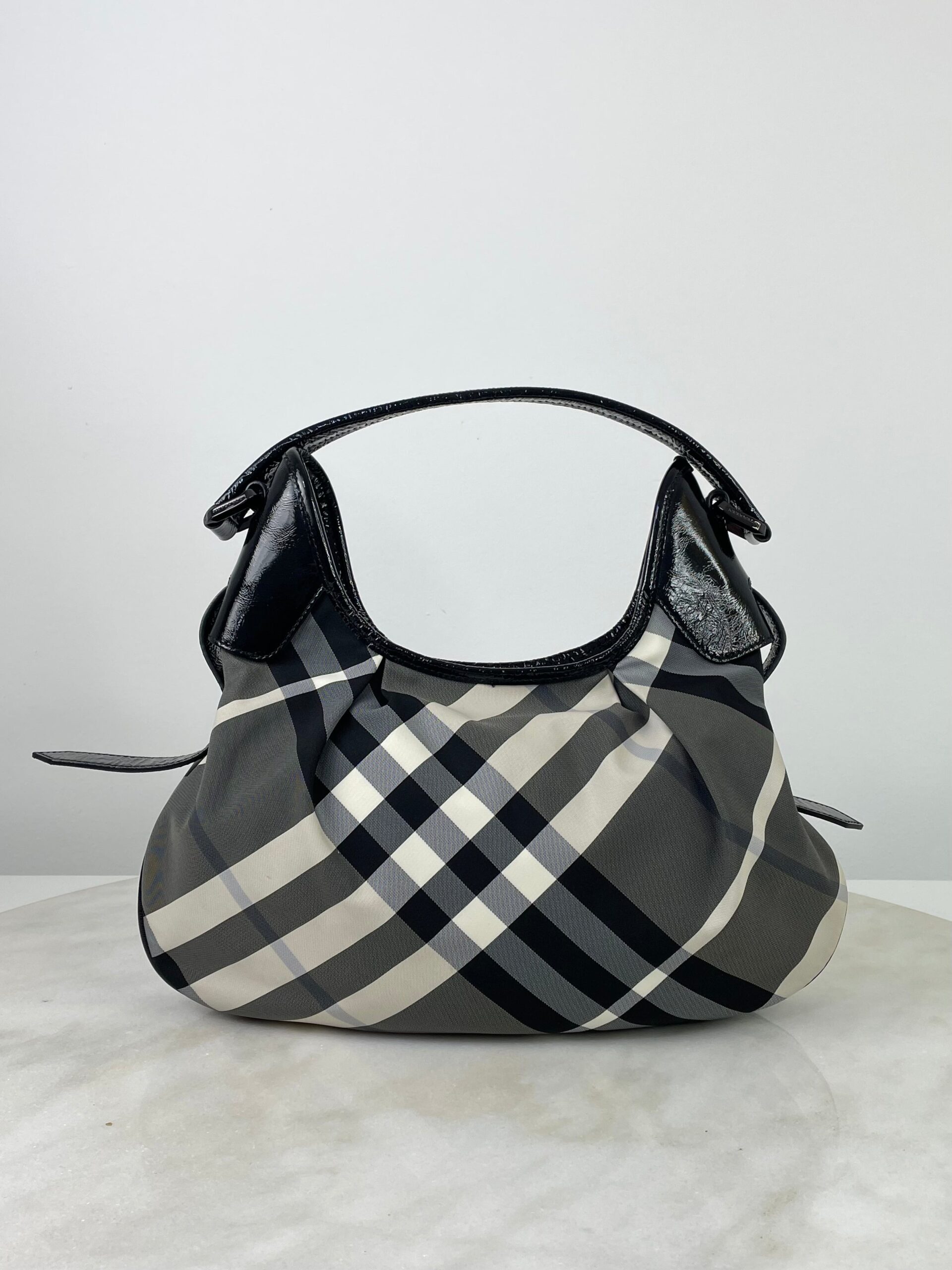 Burberry Black Nylon Beat Check Brooklyn Bag