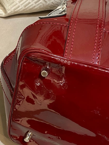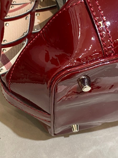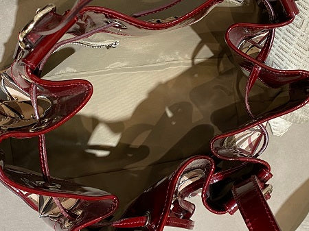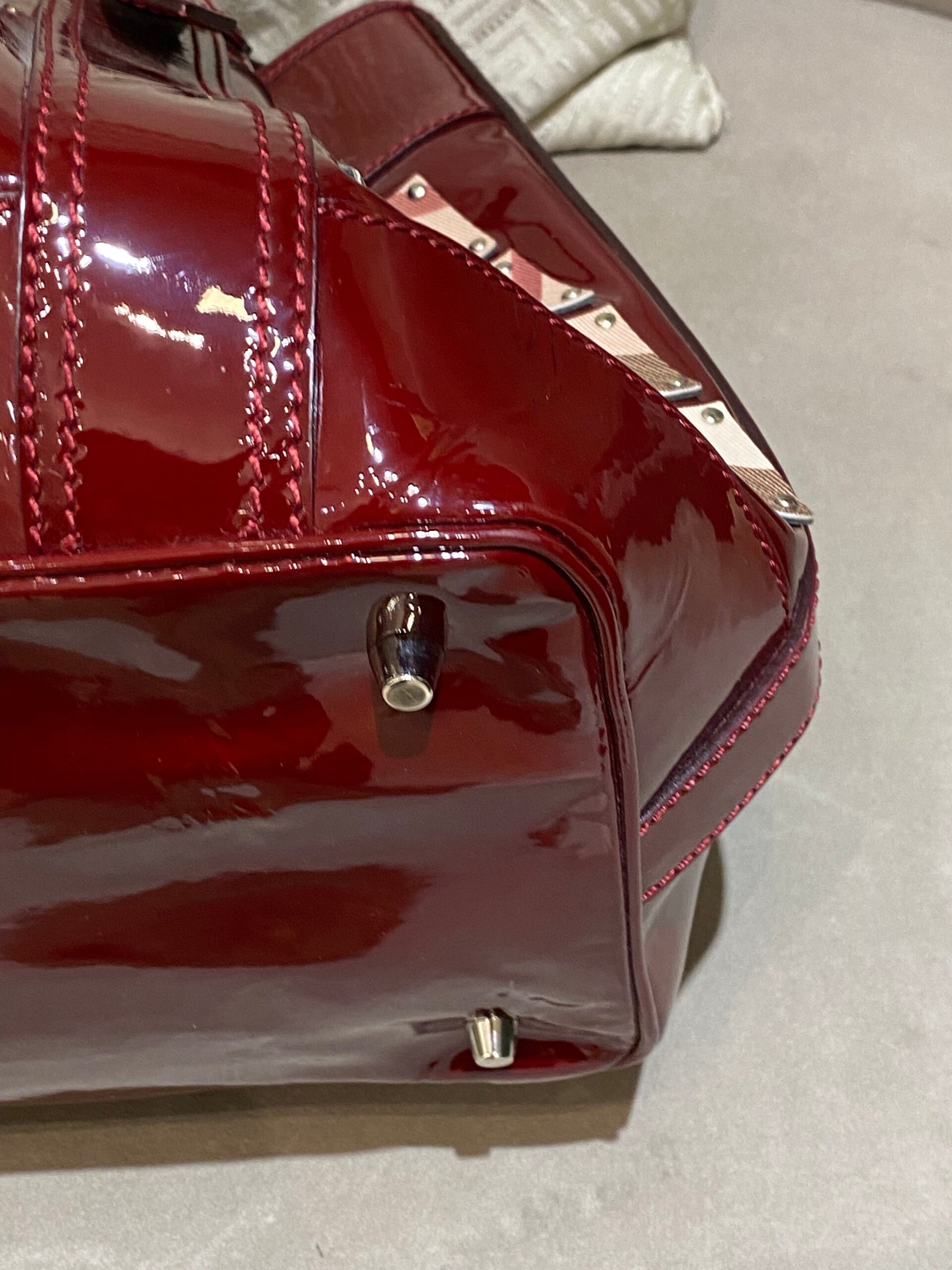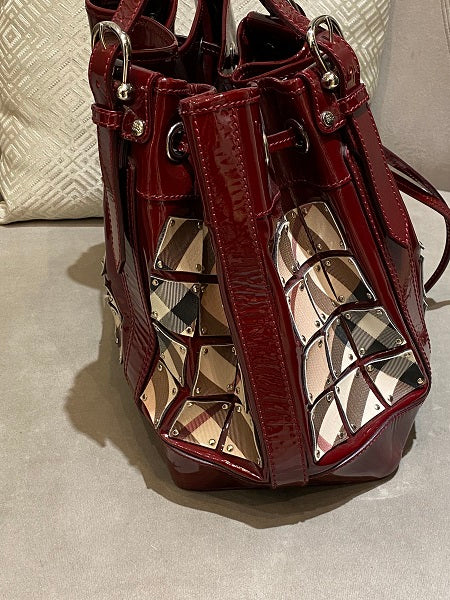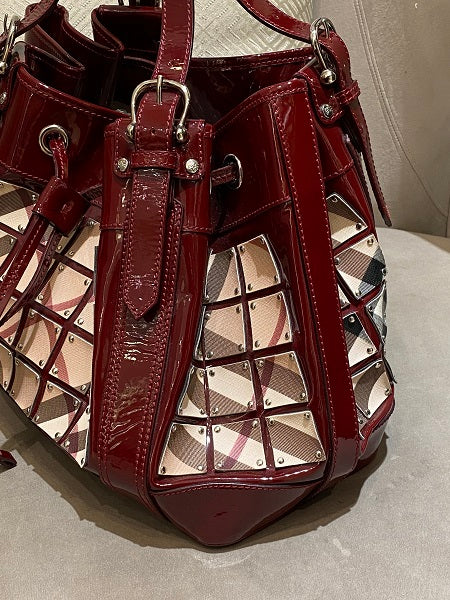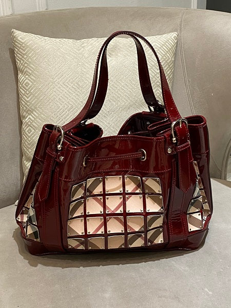 • Material: Dark Red Patent Leather with Nova Check Geometrical Patterned Fabric