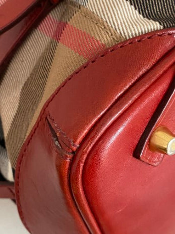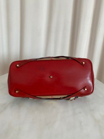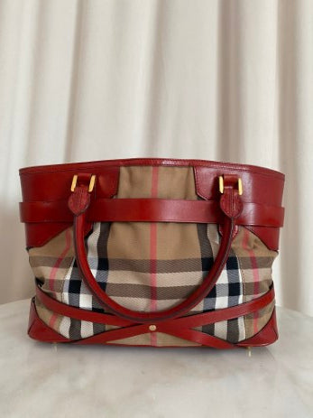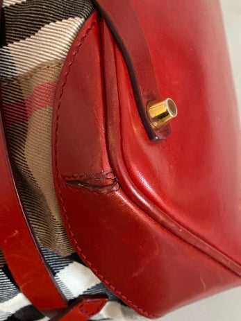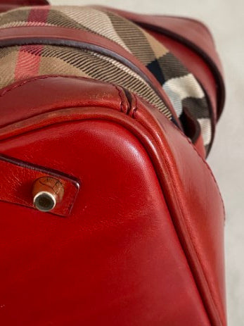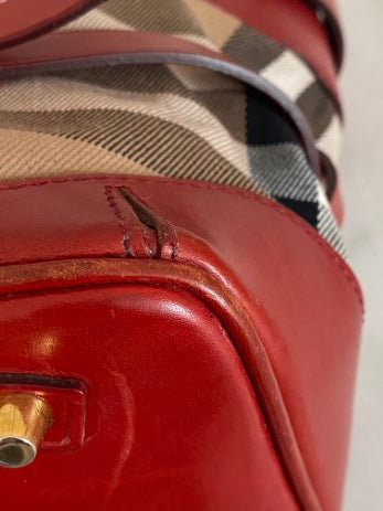 Burberry Red Bridle House Check Top Handle Bag