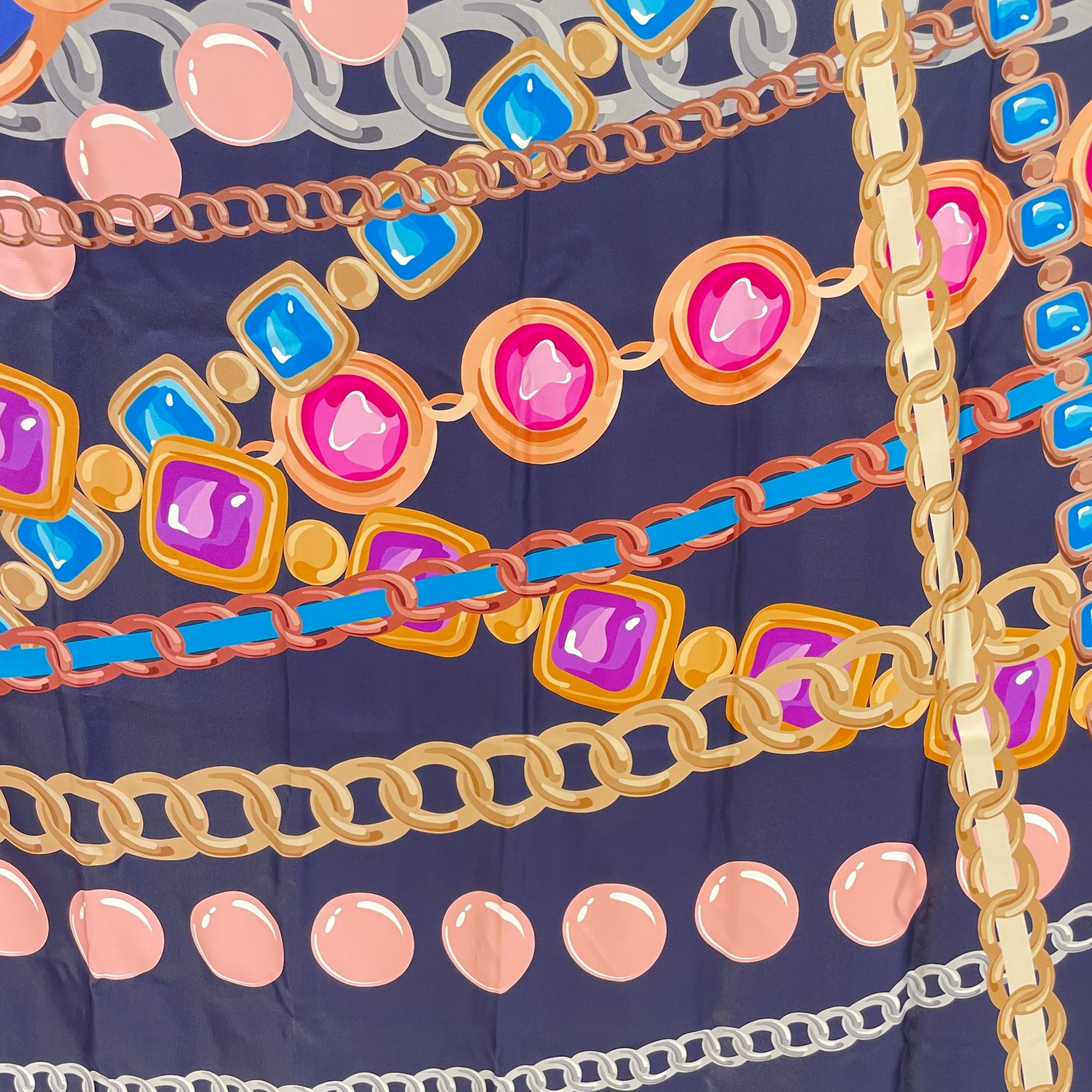 Be the first to review “CC Chain & Jewellery Print 90x90cm Multi-colour Scarf in Silk”