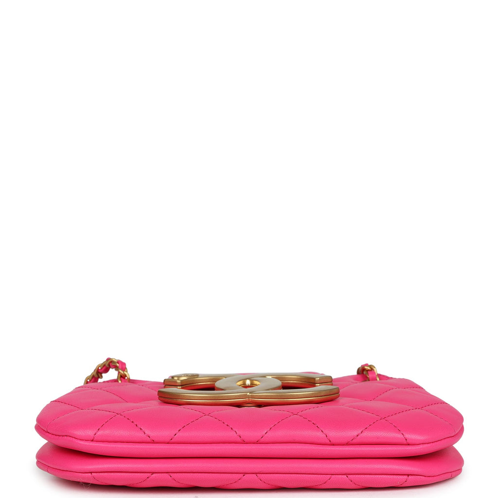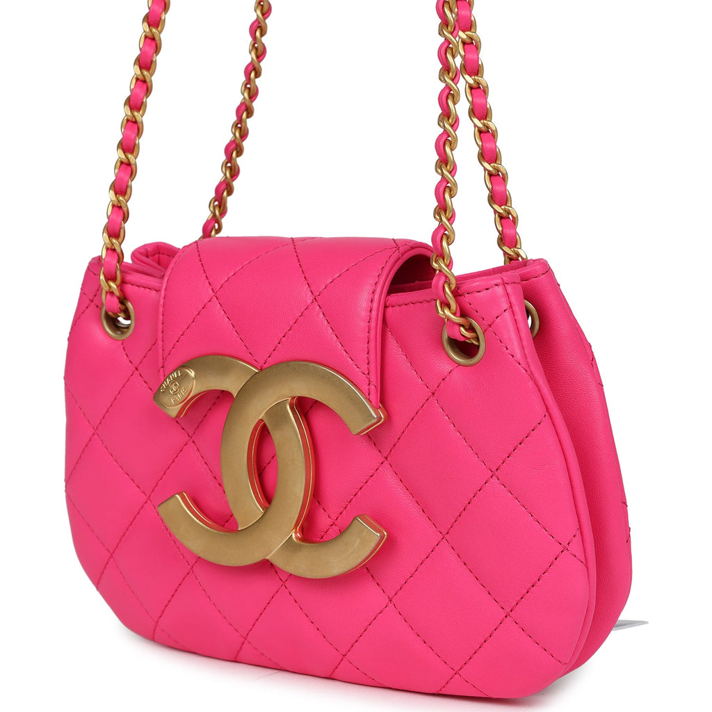 Chanel CC Mini Shoulder Bag Fuchsia Lambskin Antique Gold Hardware Shop for an authentic Chanel CC Mini Shoulder Bag in fuchsia lambskin leather with antique gold tone hardware in new and never worn condition at Madison Avenue Couture