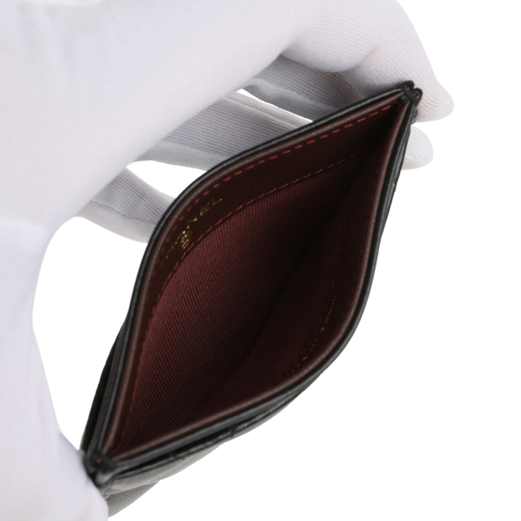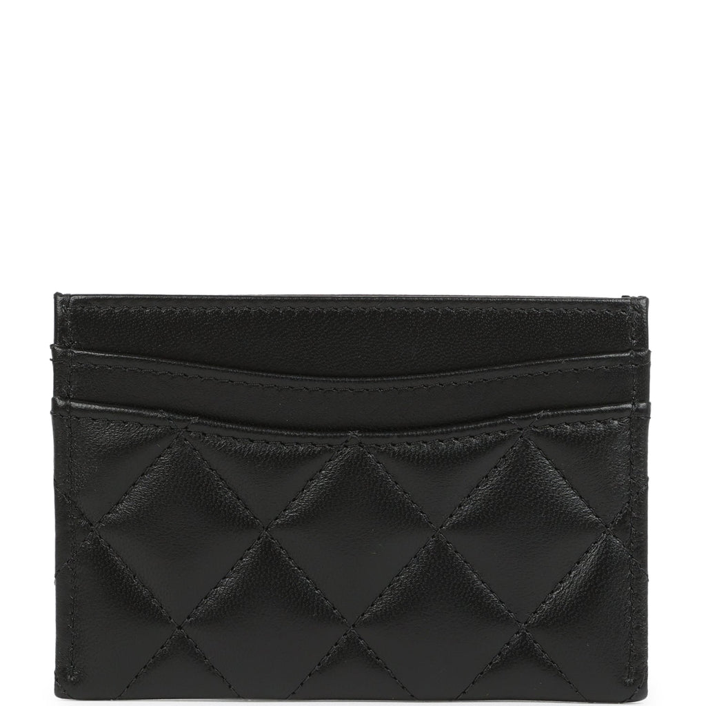 Chanel Classic Card Holder Wallet Black Lambskin Light Gold Hardware Shop for an authentic Chanel classic cardholder in black lambskin leather with light gold hardware in new and never worn condition at Madison Avenue Couture.