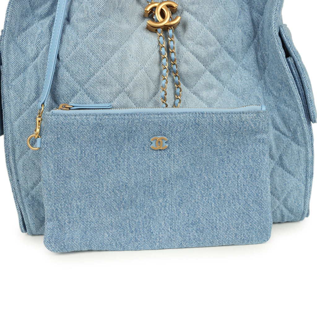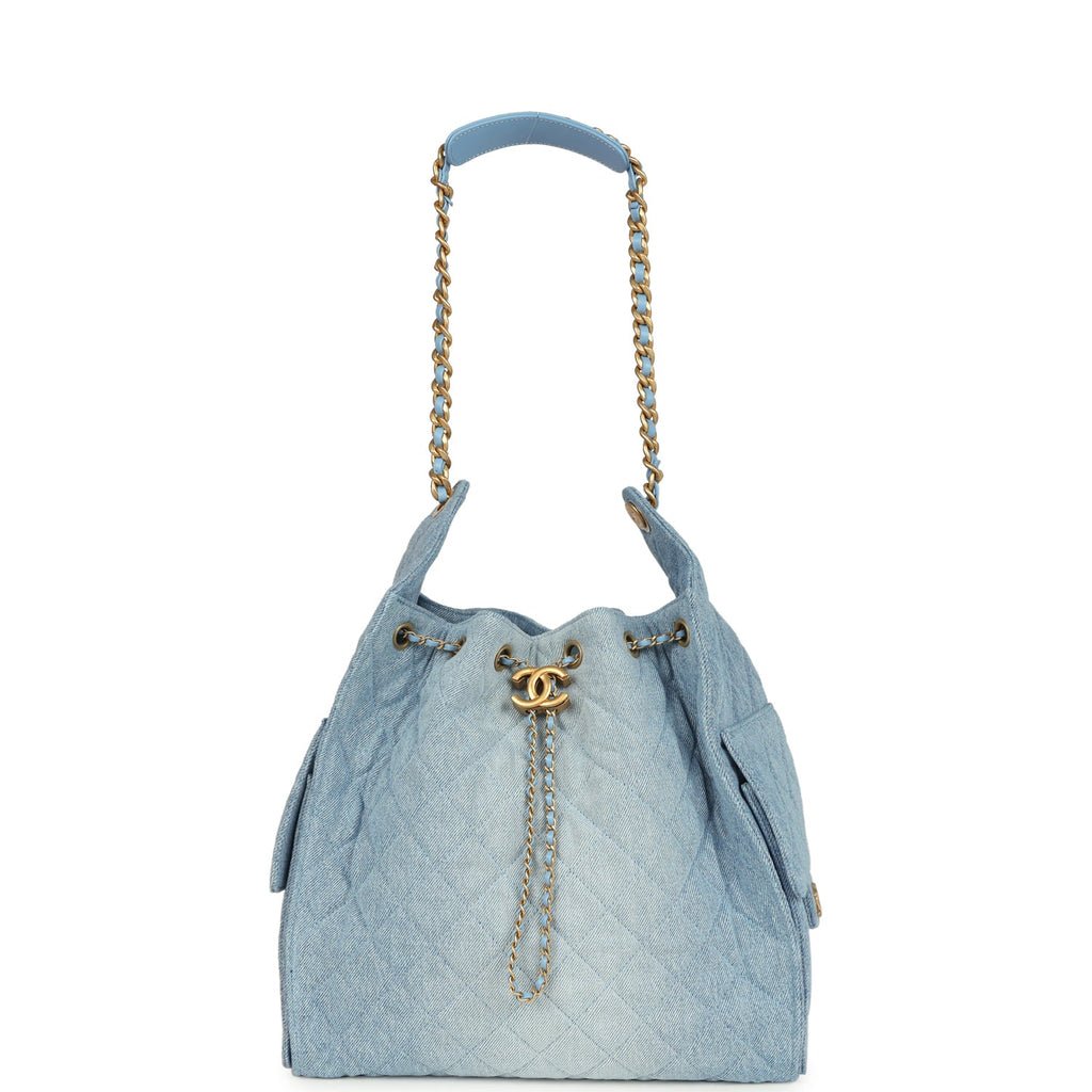 Chanel Medium 25 Hobo Bag Light Blue Washed Denim Antique Gold Hardware