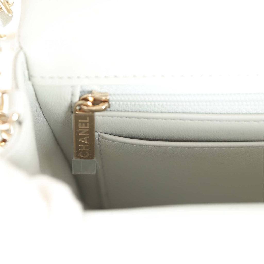 Chanel Mini Rectangular Flap Bag Light Grey Lambskin Light Gold Hardware