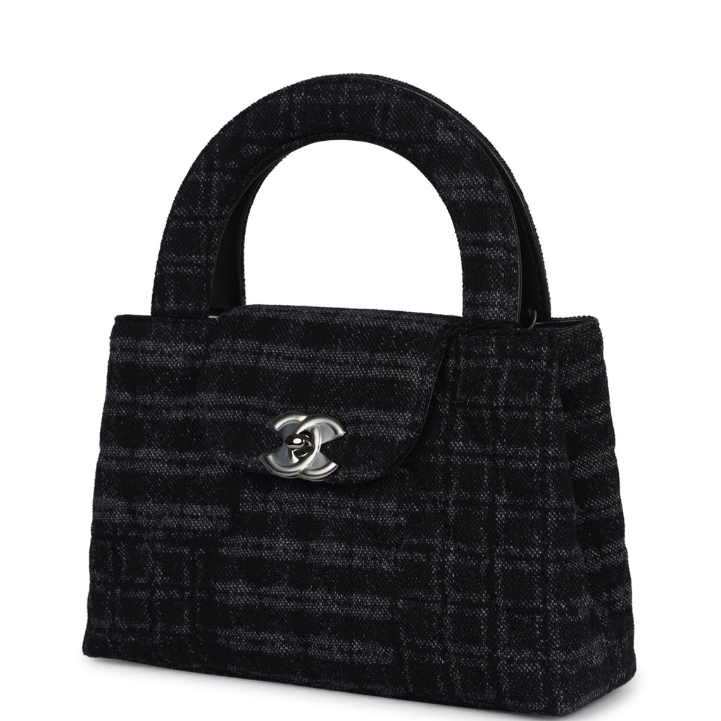 Chanel Small Kelly Shopper Dark Grey and Black Plaid Canvas Ruthenium Hardware Shop for an authentic Chanel Small Kelly Shopper in black and grey canvas with ruthenium hardware in new and never worn condition at Madison Avenue Couture.