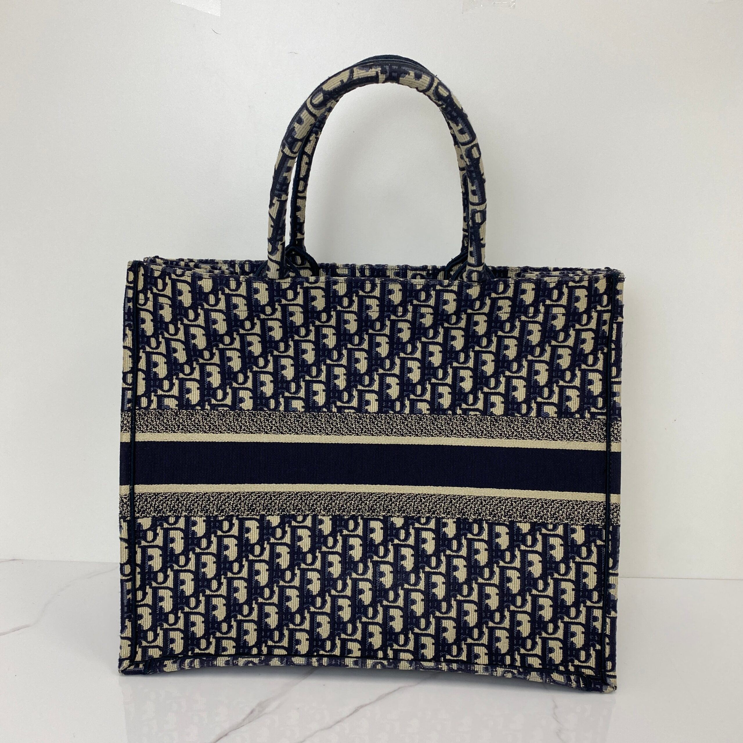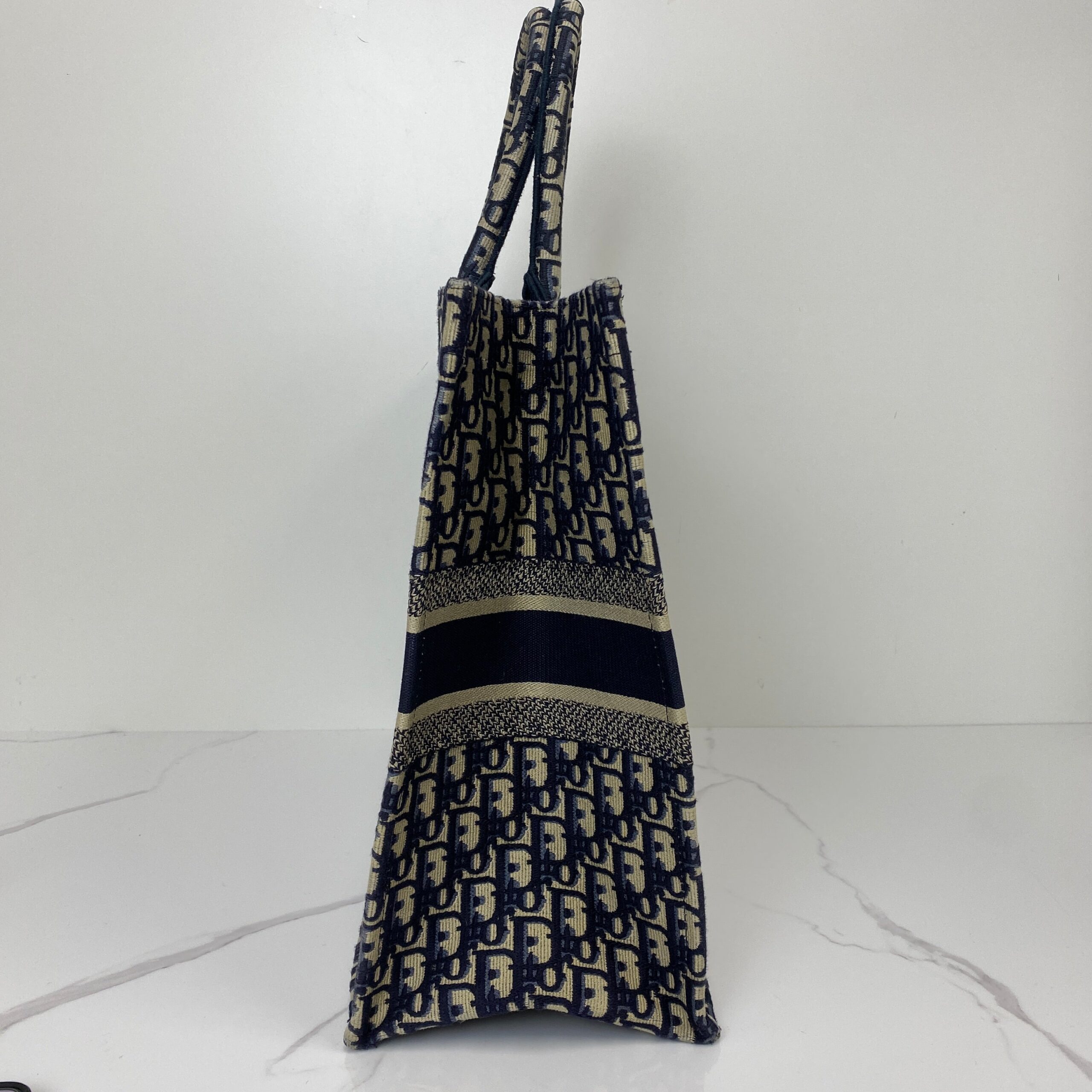 The Christian Dior Large Book Tote in Blue coated canvas is the ultimate statement piece for work, travel, or everyday elegance. Spacious yet structured, this iconic tote effortlessly carries your essentials—style it with casual denim or sleek tailoring for a polished look.