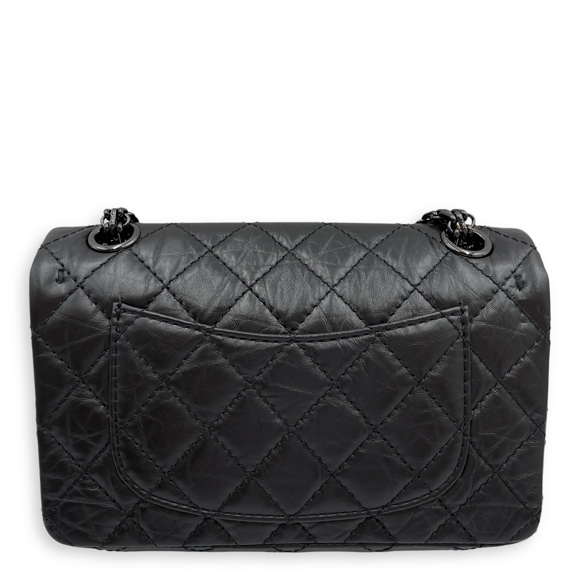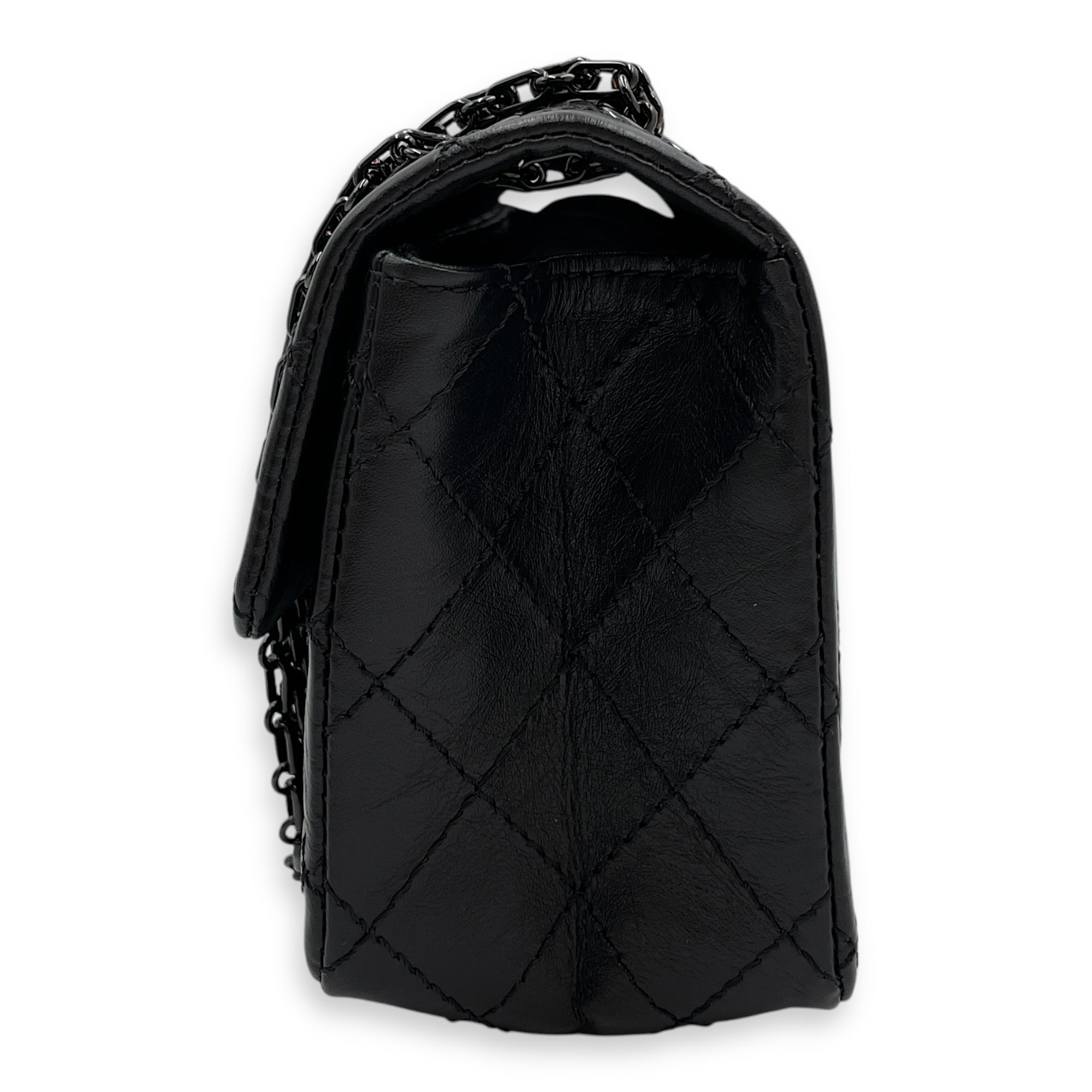 Classic Reissue 2.55 Mini SoBlack Shoulder Bag in Distressed Leather, Gunmetal hardware