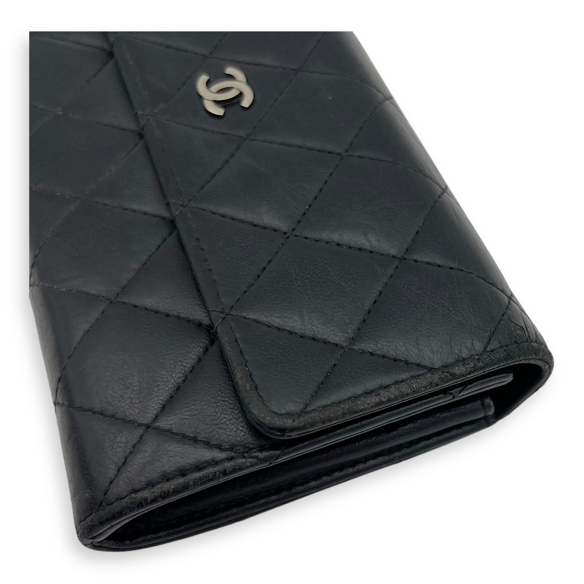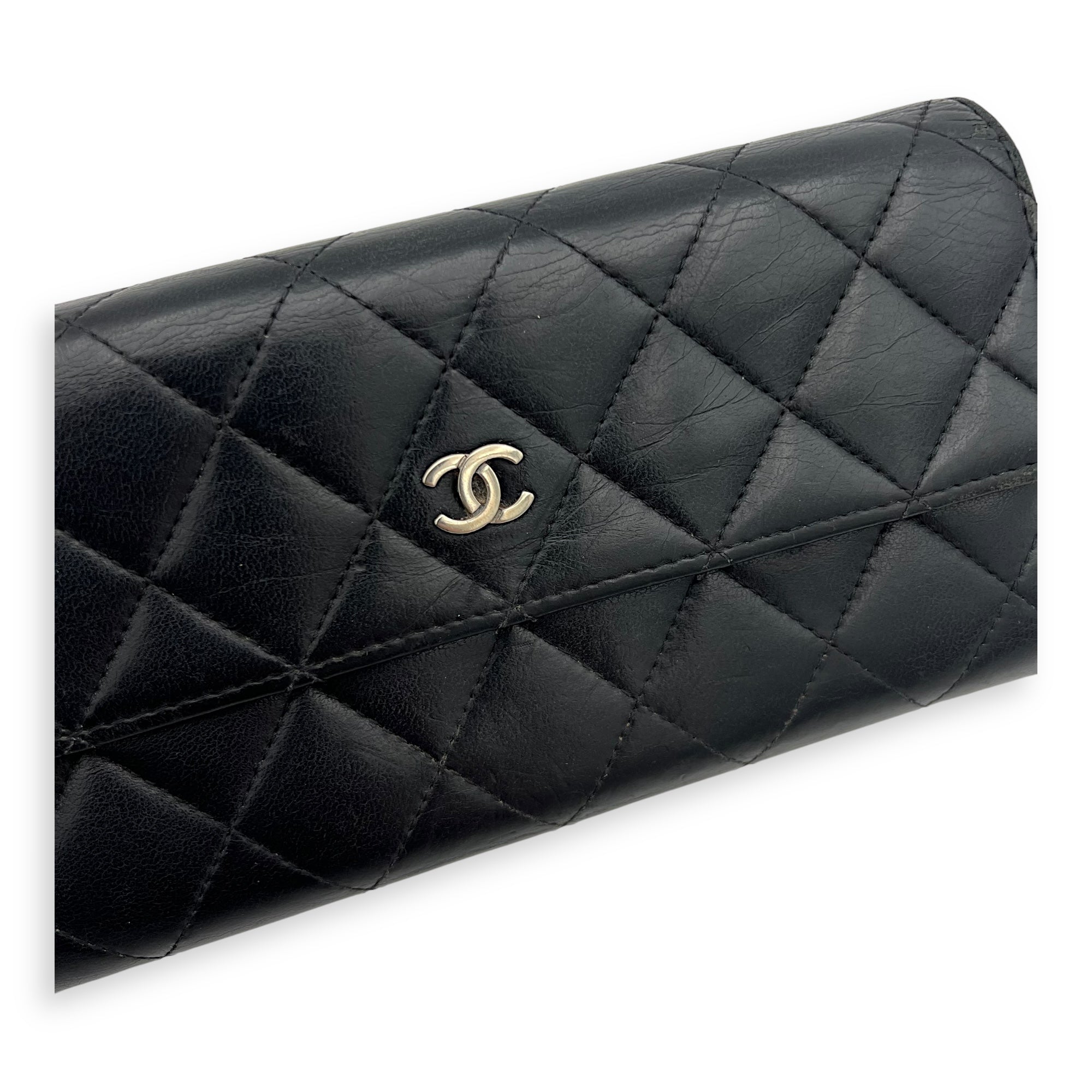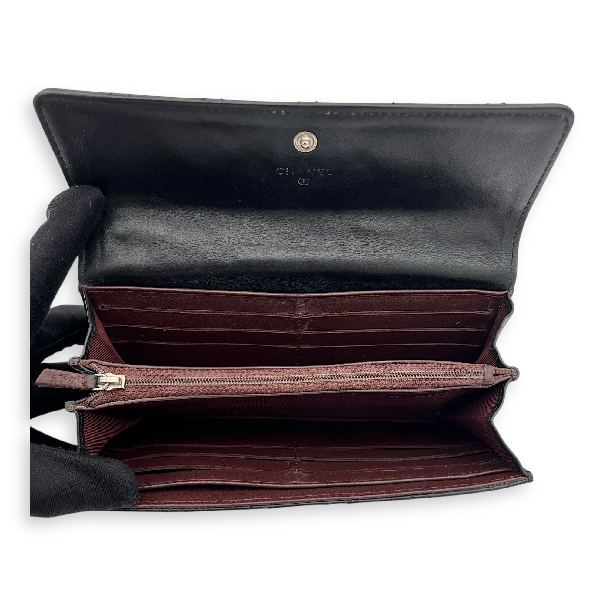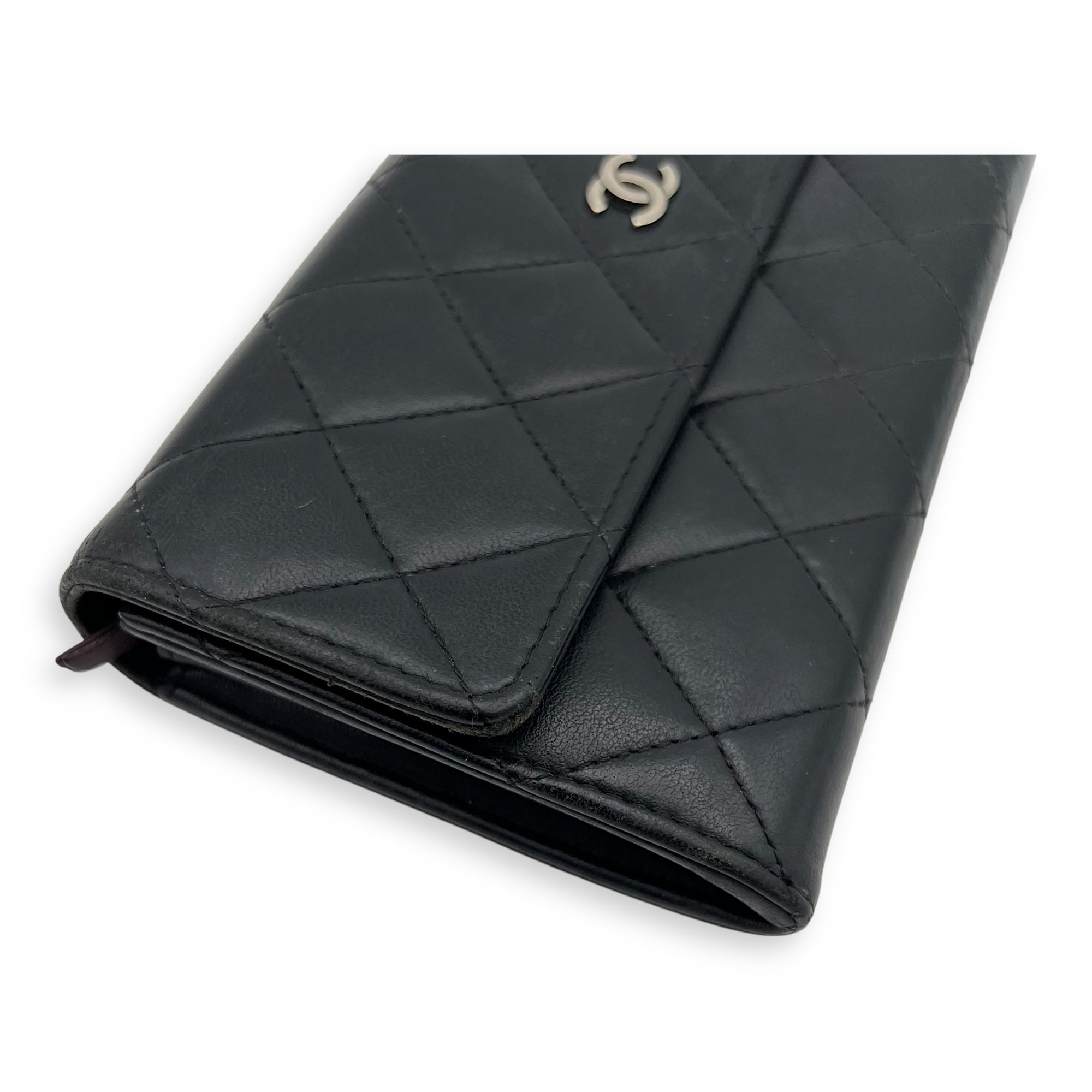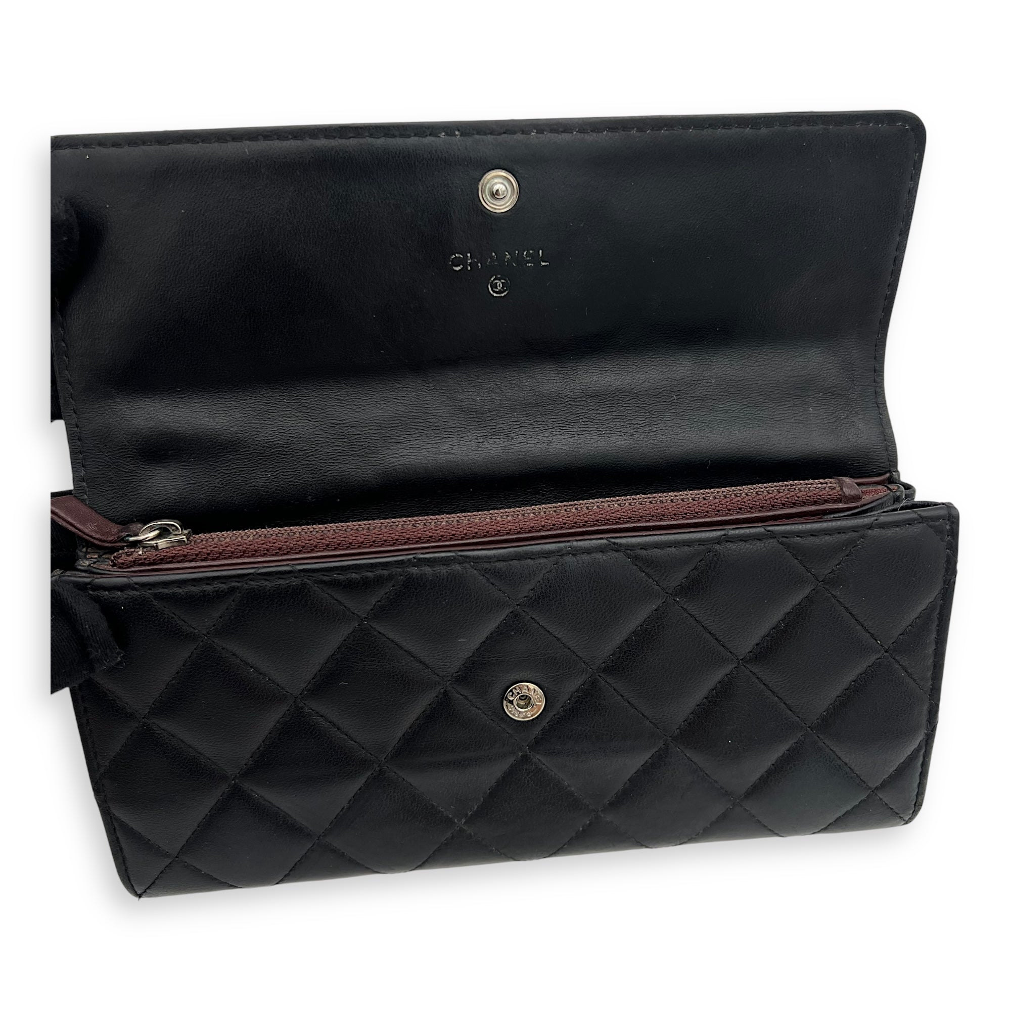 Classic Wallet Long Black in Lambskin, Silver hardware
