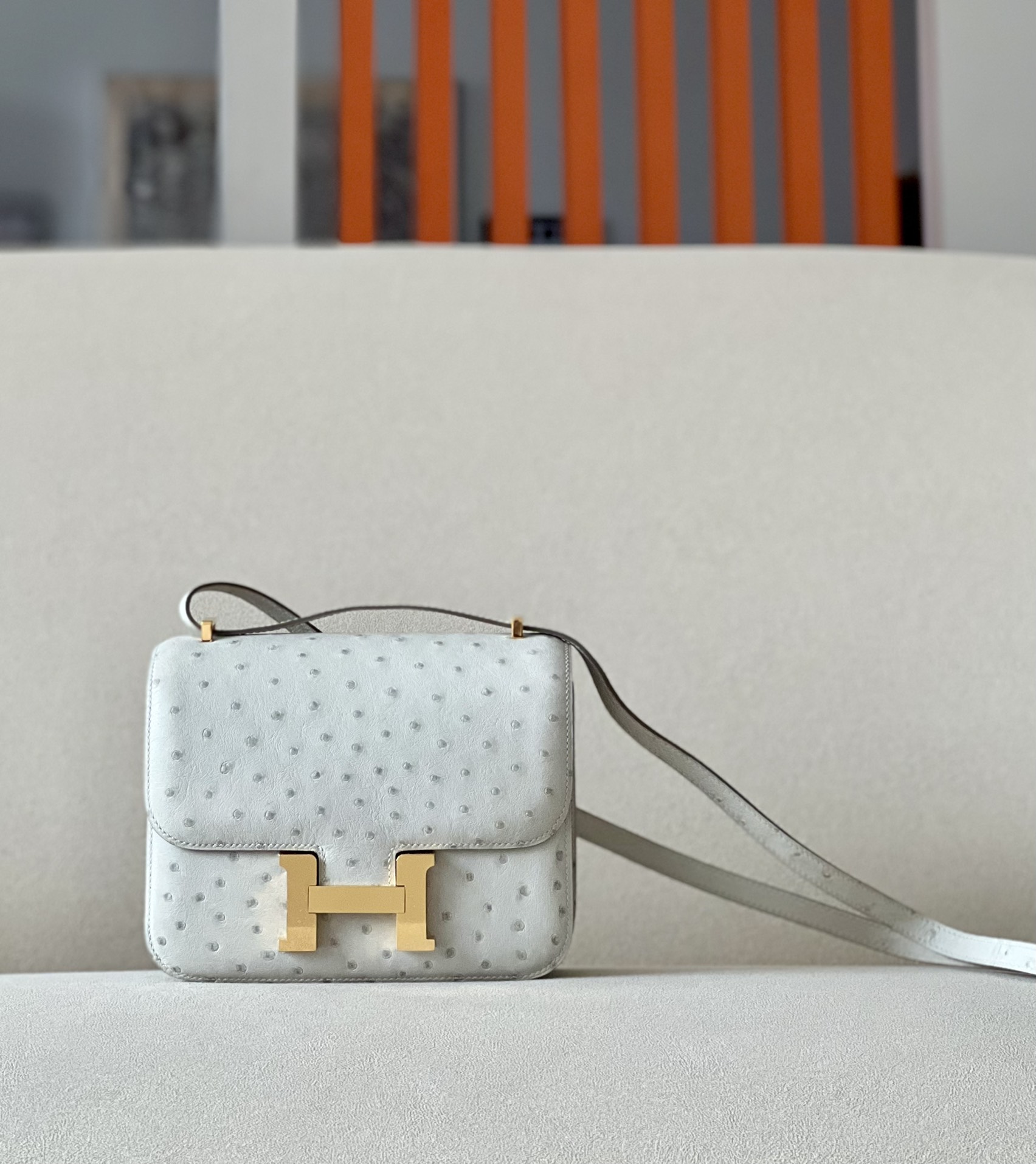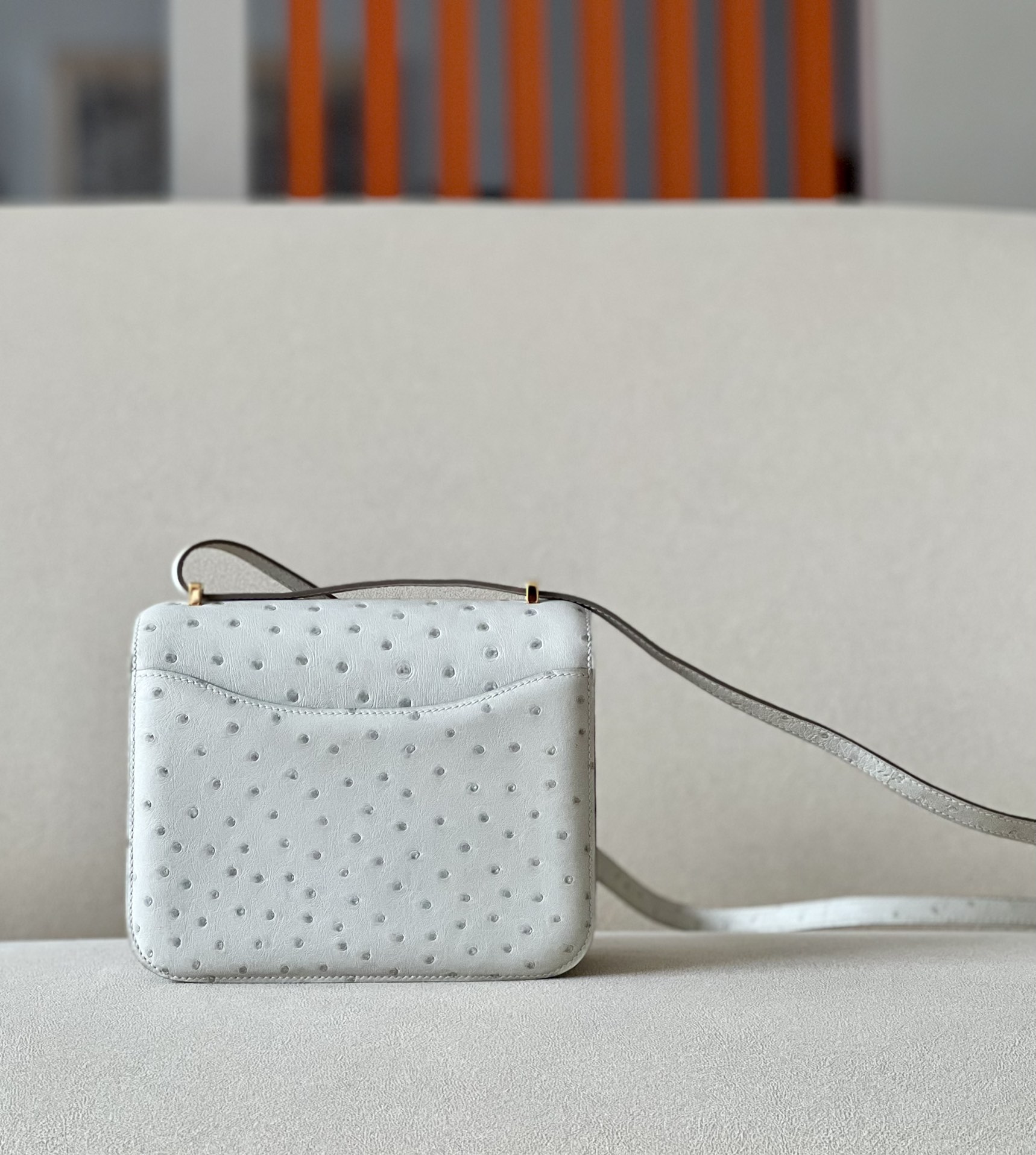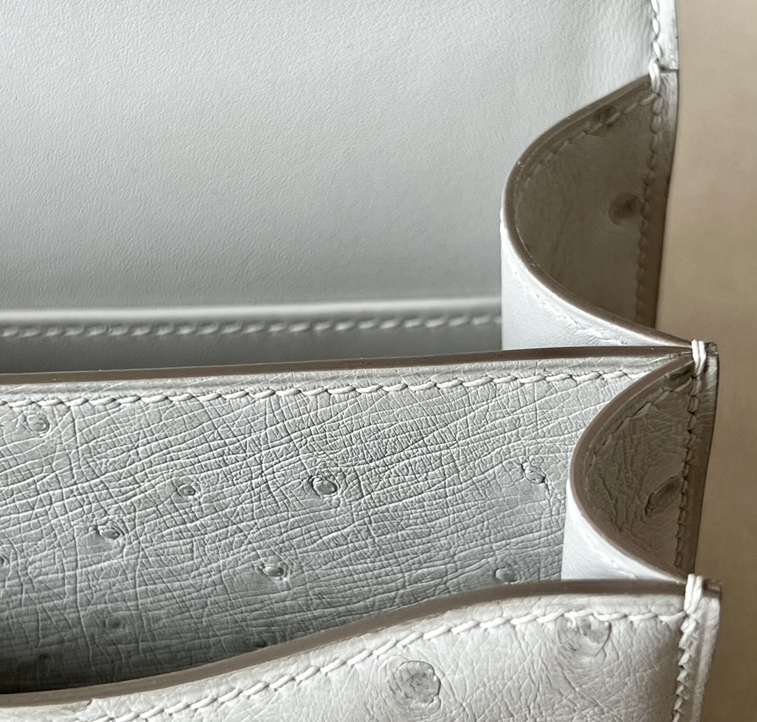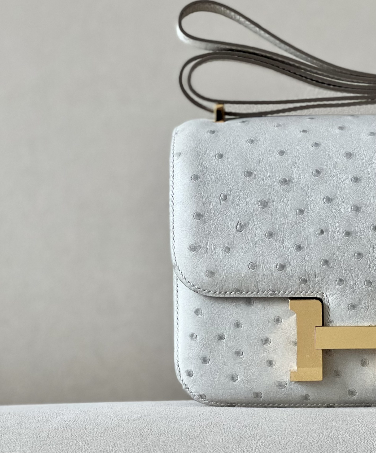 Be the first to review “Constance 19 Ostrich Gris Perle (80) Gold Hardware”