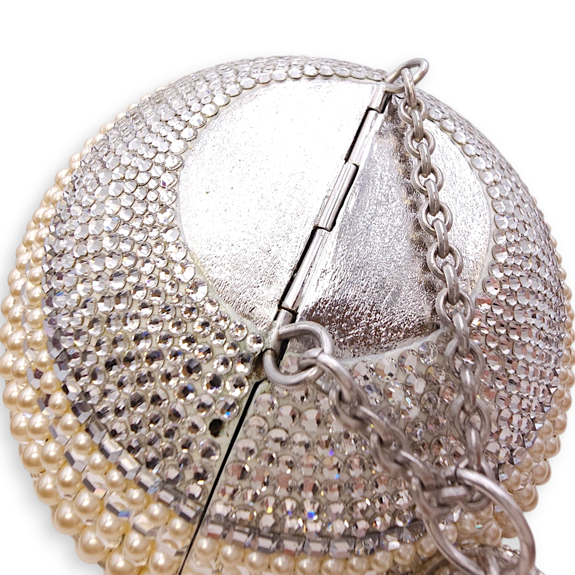 Be the first to review “Couture Sphere Celestial Clutch Bag White Clutch in Pearl & Crystals, Palladium hardware”