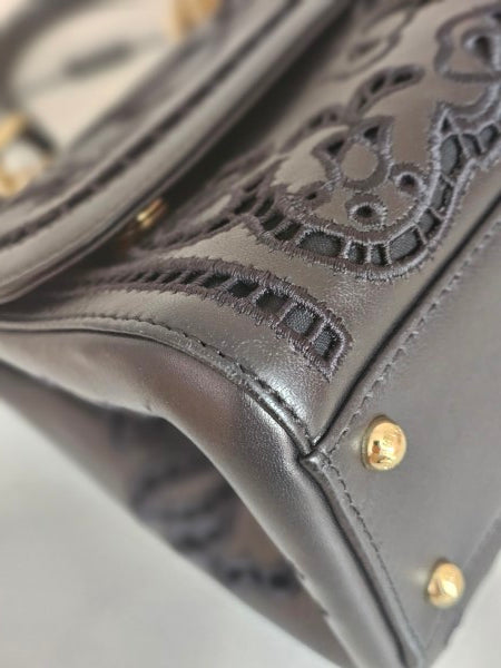 Dolce & Gabbana Black Embroidered Laser Cut Miss Sicily Satchel Medium Bag