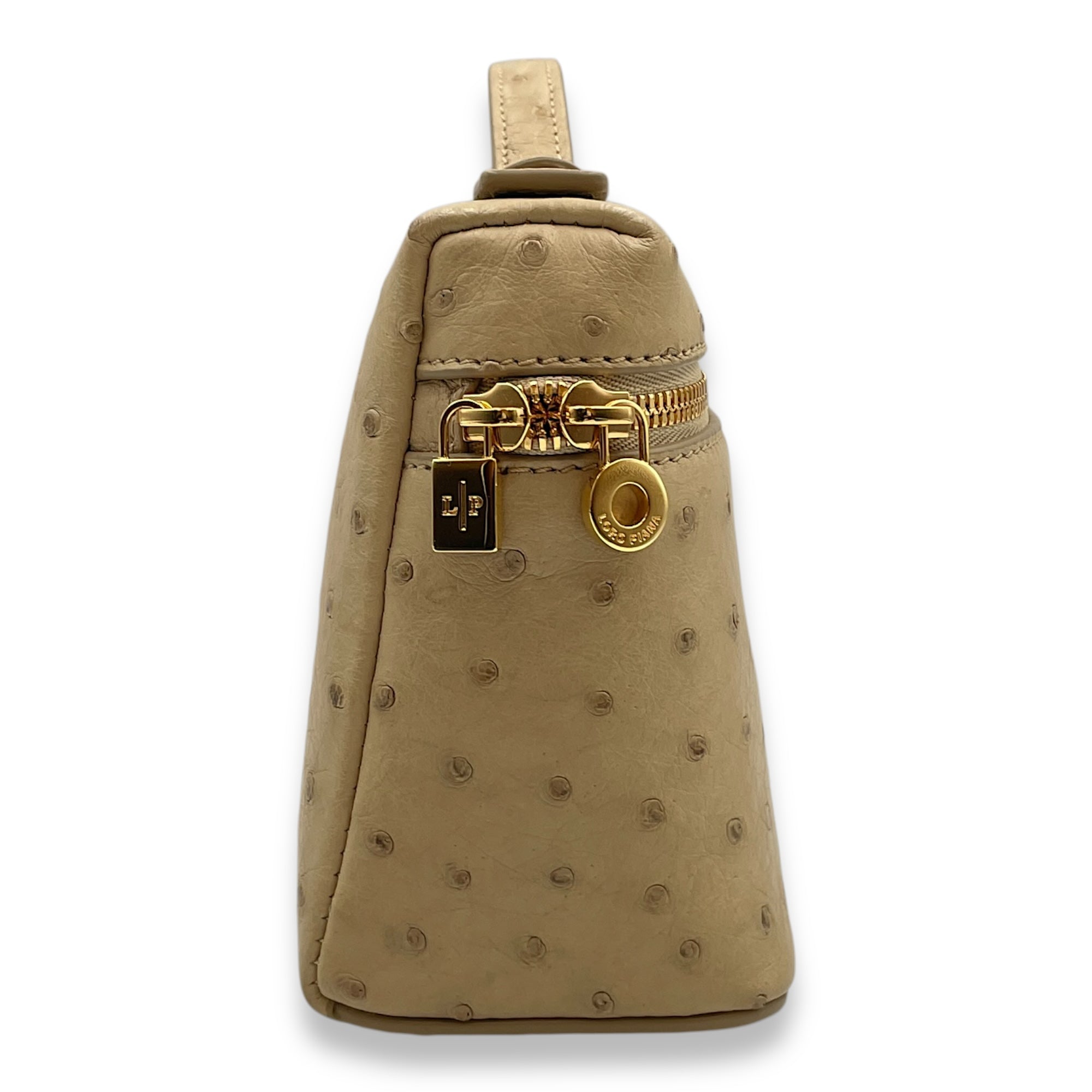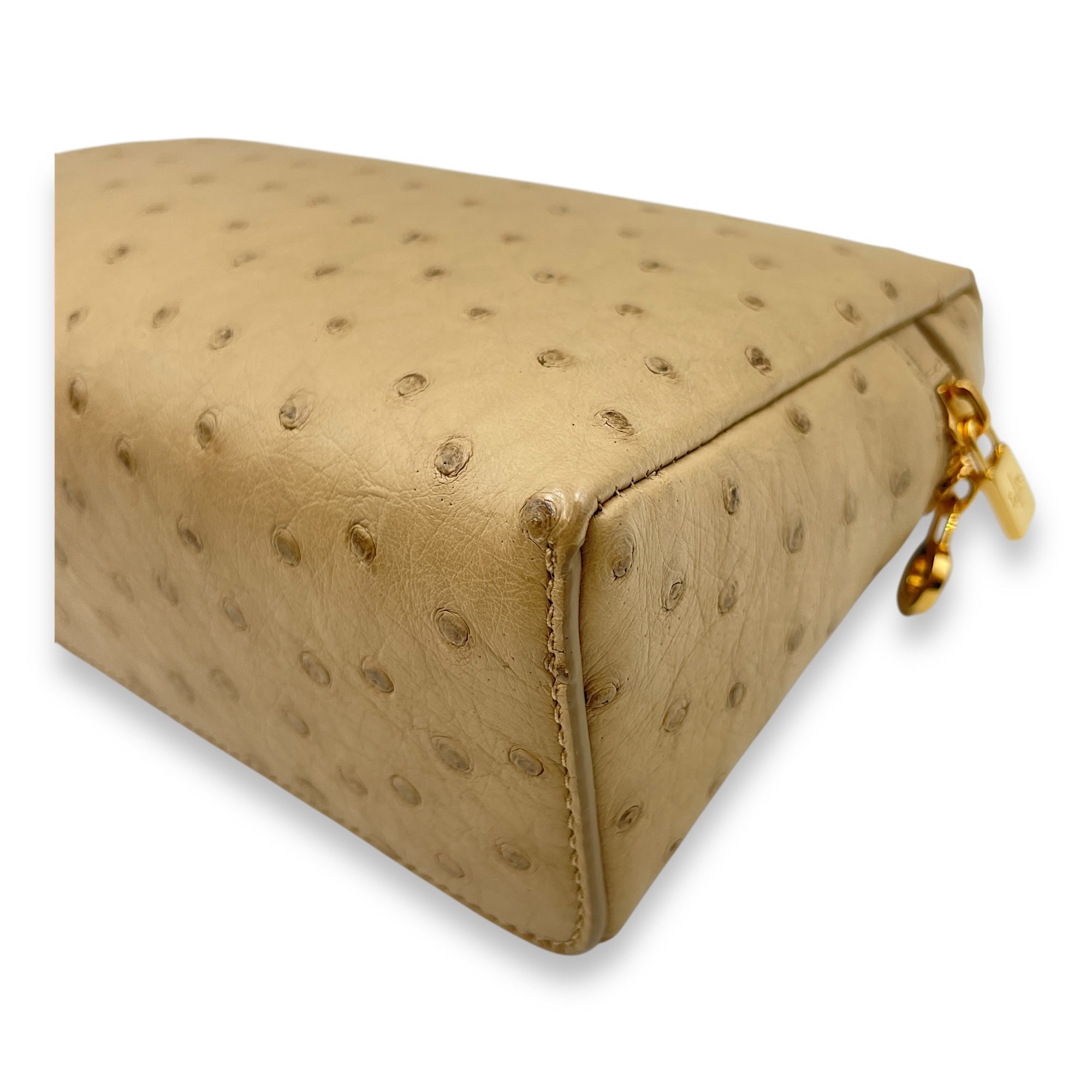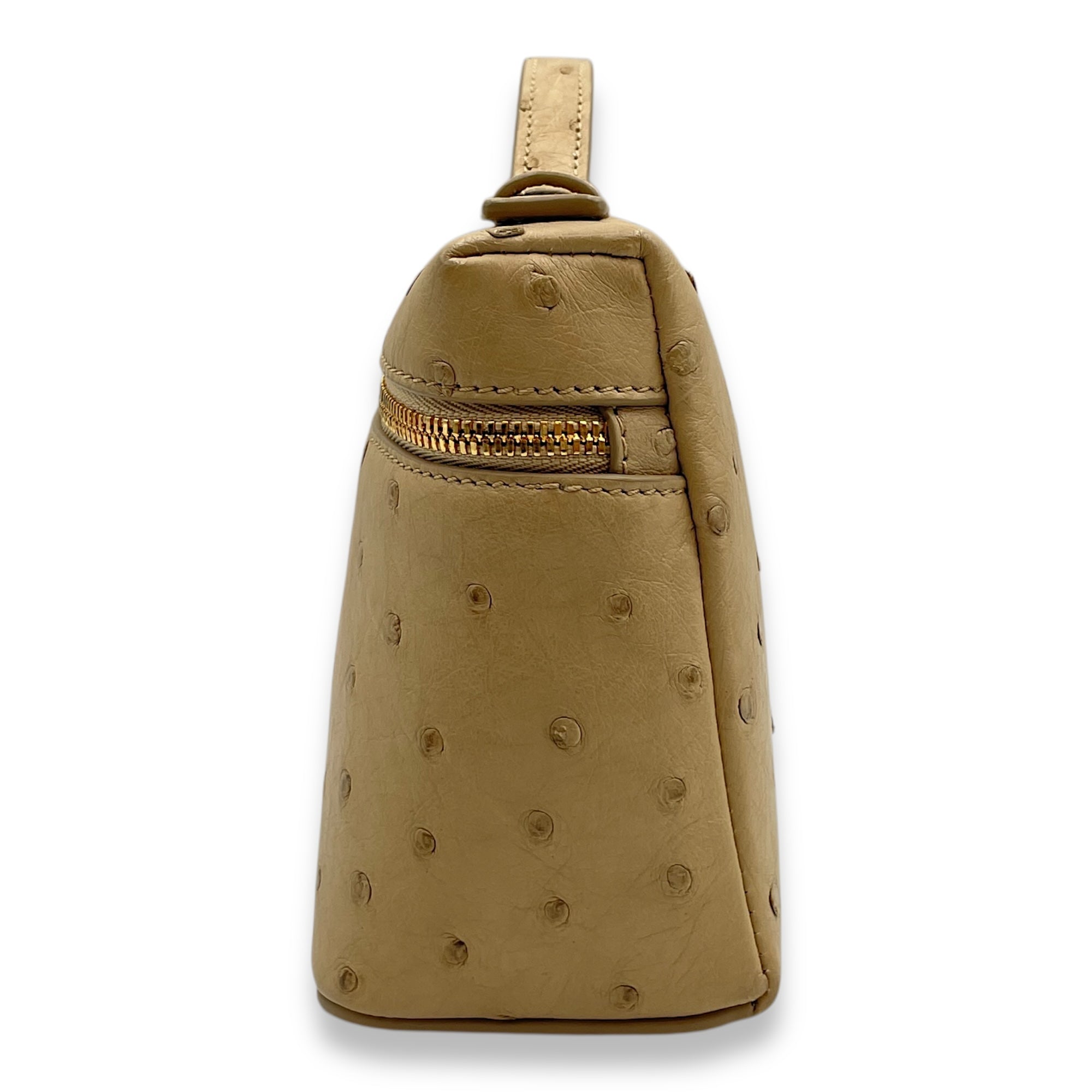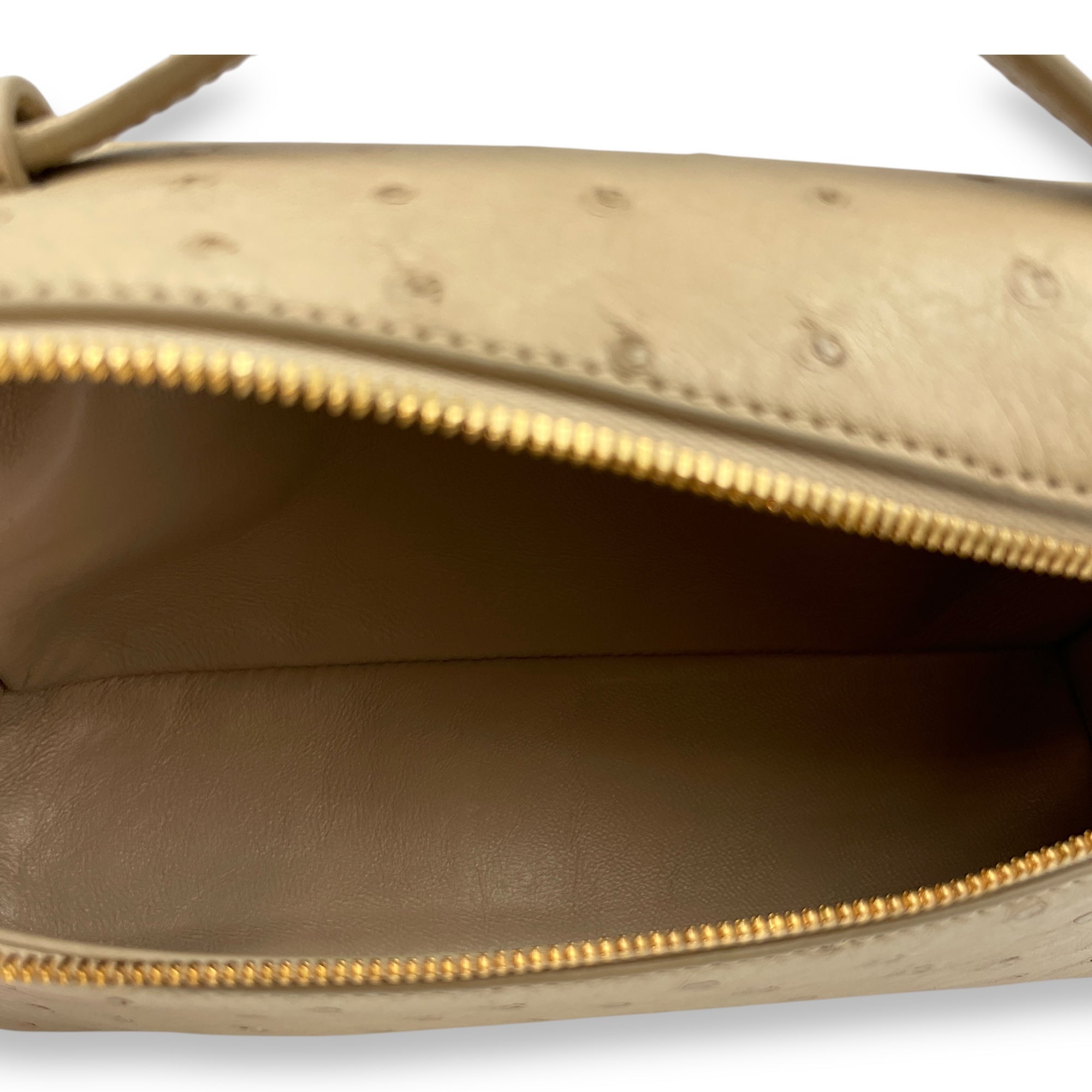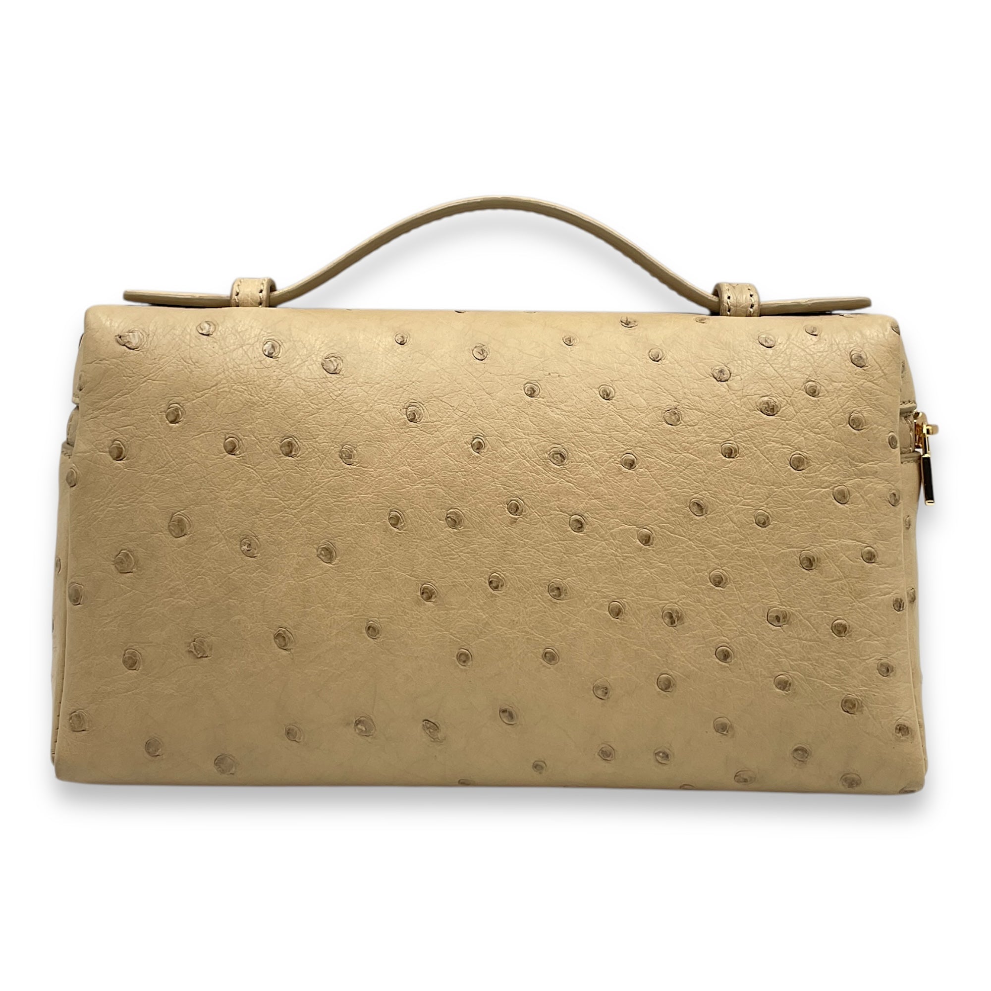 Extra Pocket 19 Beige Top Handle Bag in Ostrich, Gold hardware