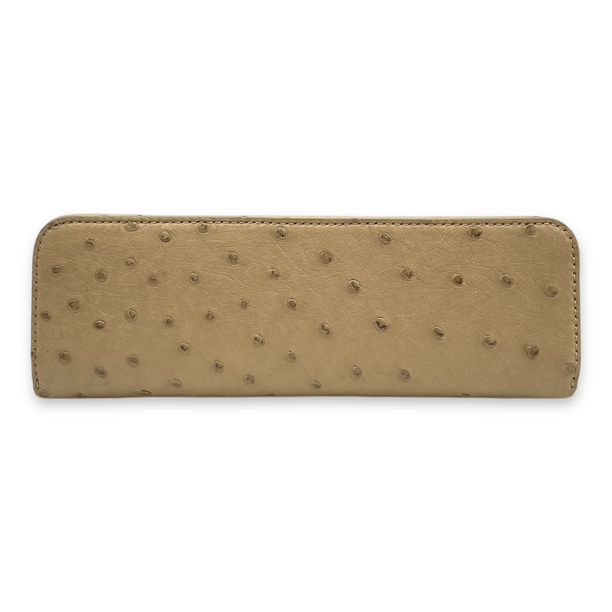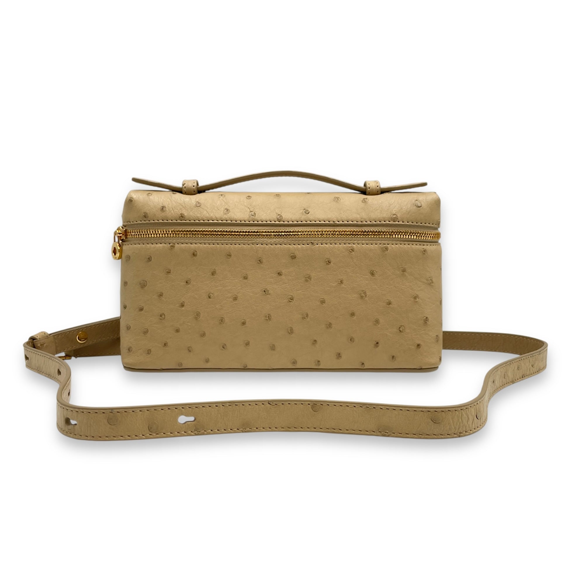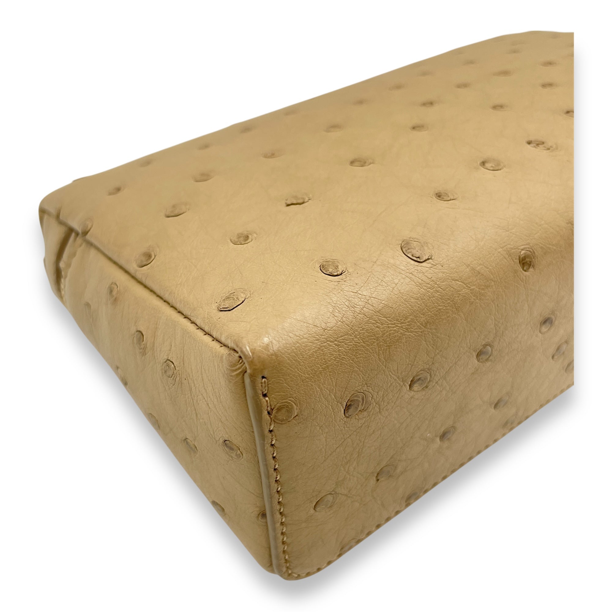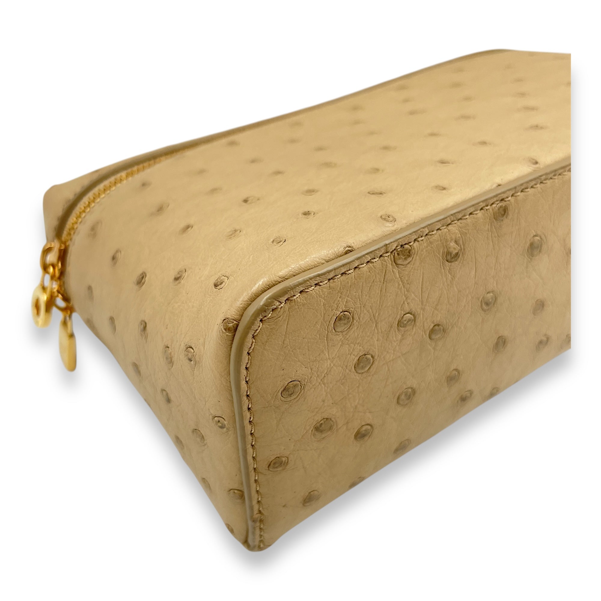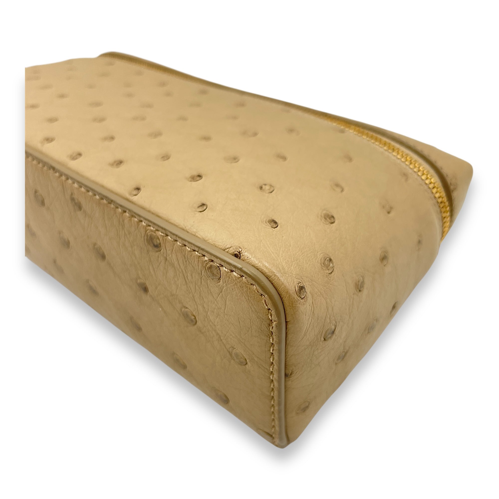 Extra Pocket 19 Beige Top Handle Bag in Ostrich, Gold hardware