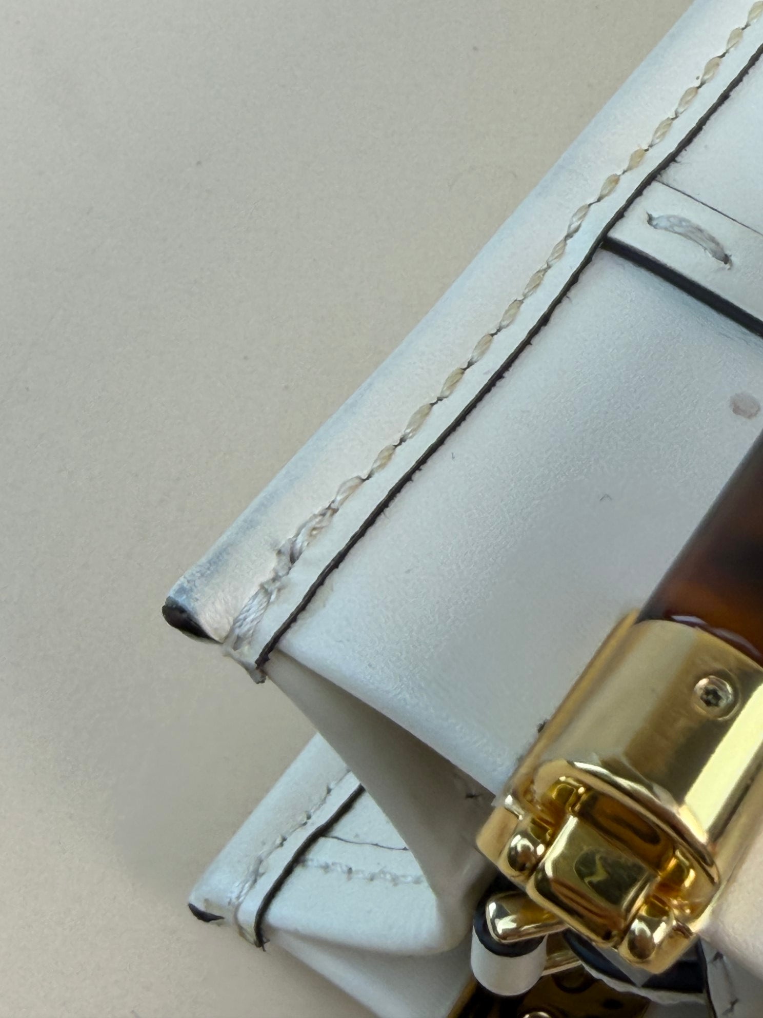 • Material: Cream Leather with Stamped “FENDI ROMA” and Tortoiseshell Effect Plexiglass Handles