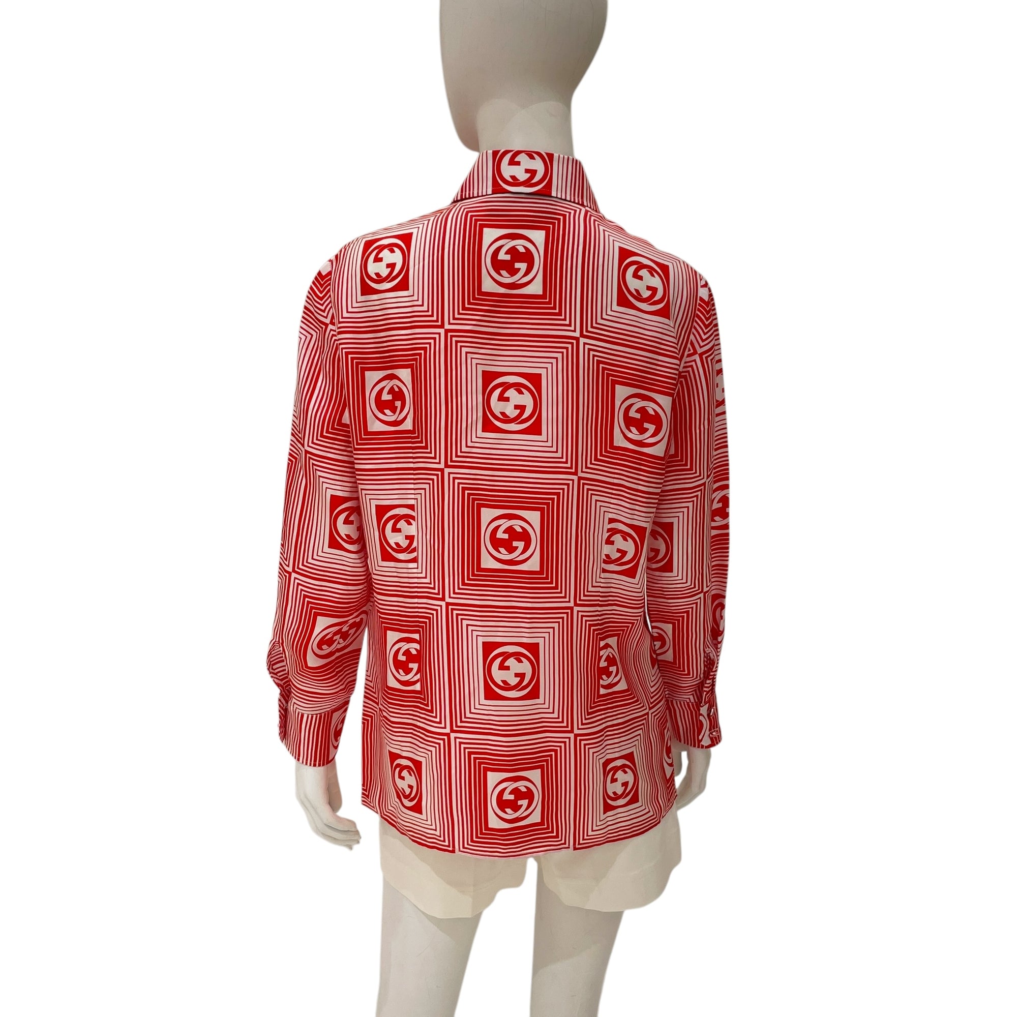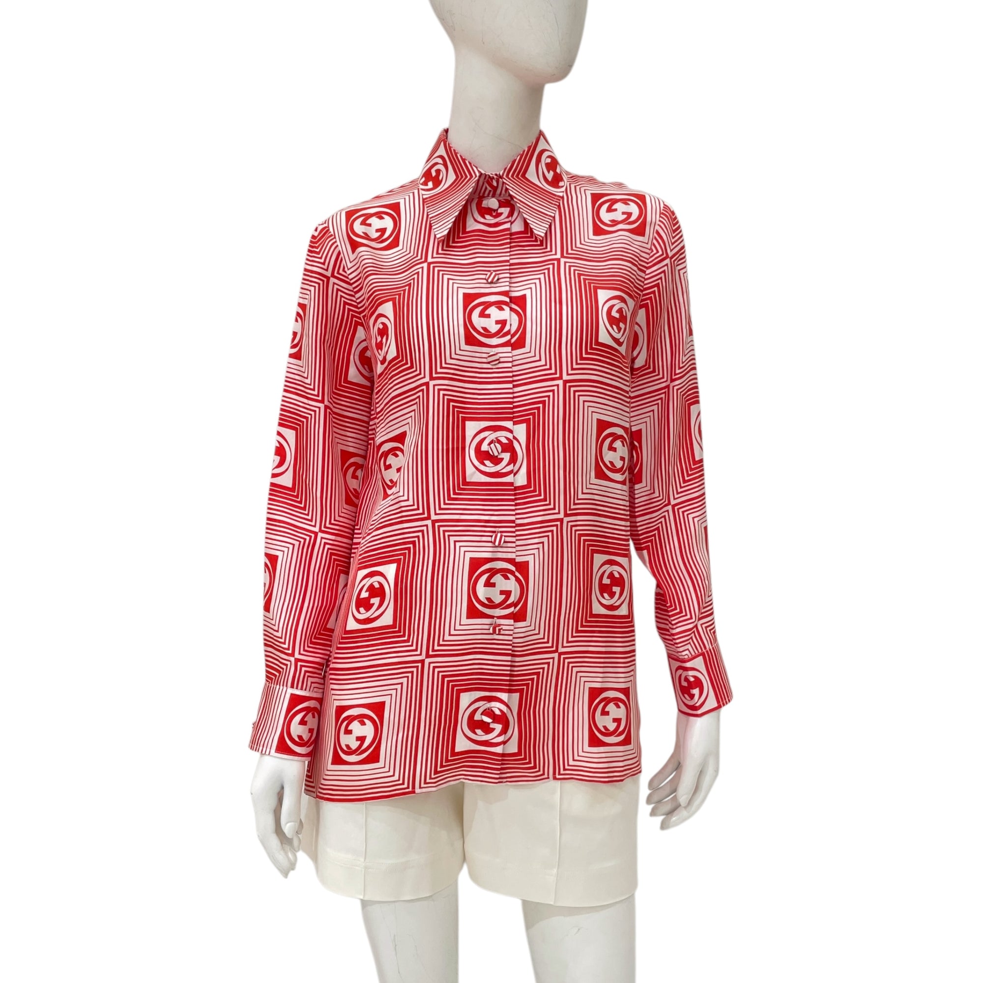GG Logo 42 Red/White Long-sleeved Shirt in Silk