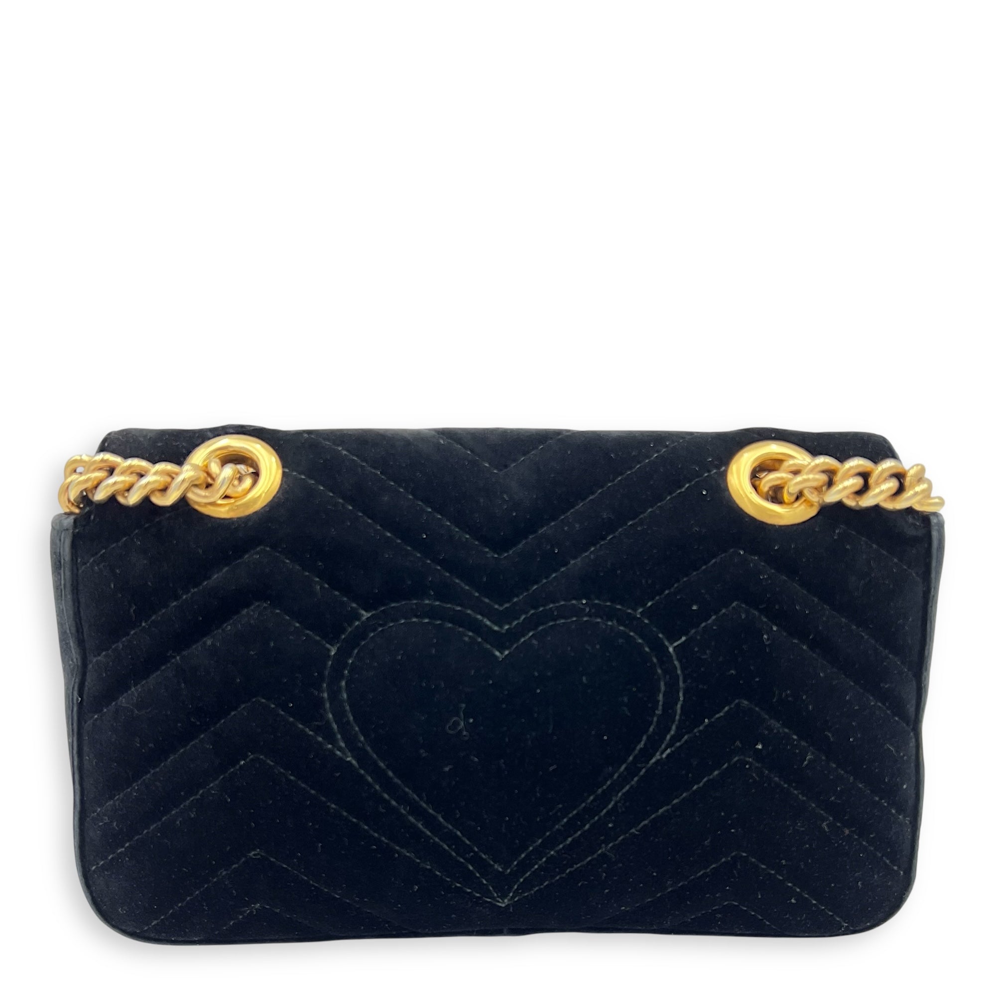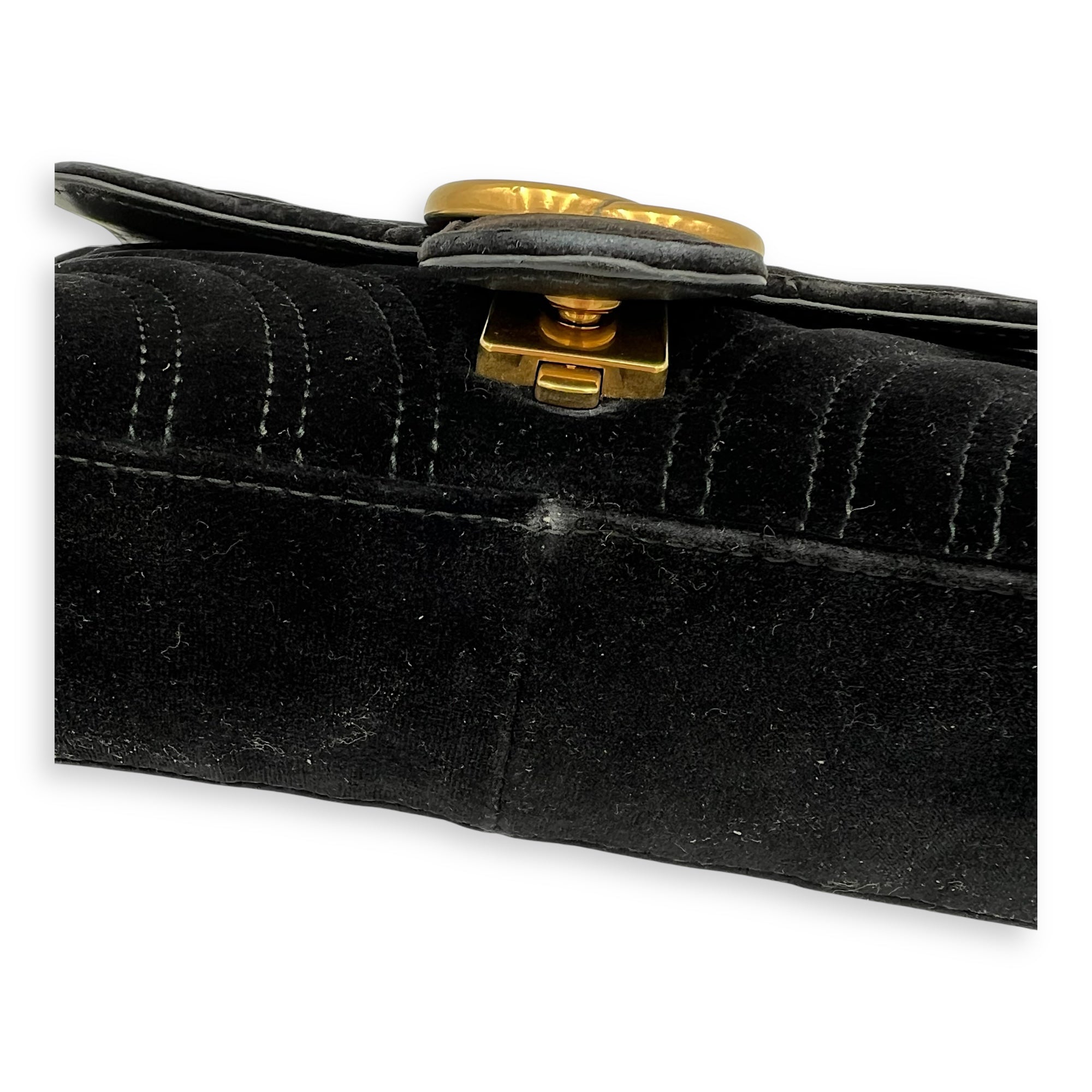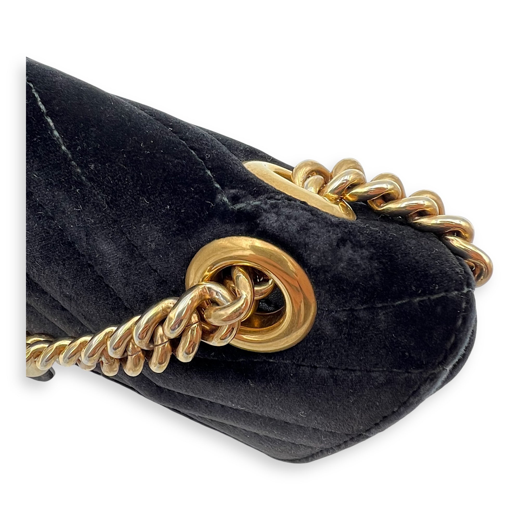 GG Marmont Shoulder Bag Mini Black in Velvet, Gold hardware