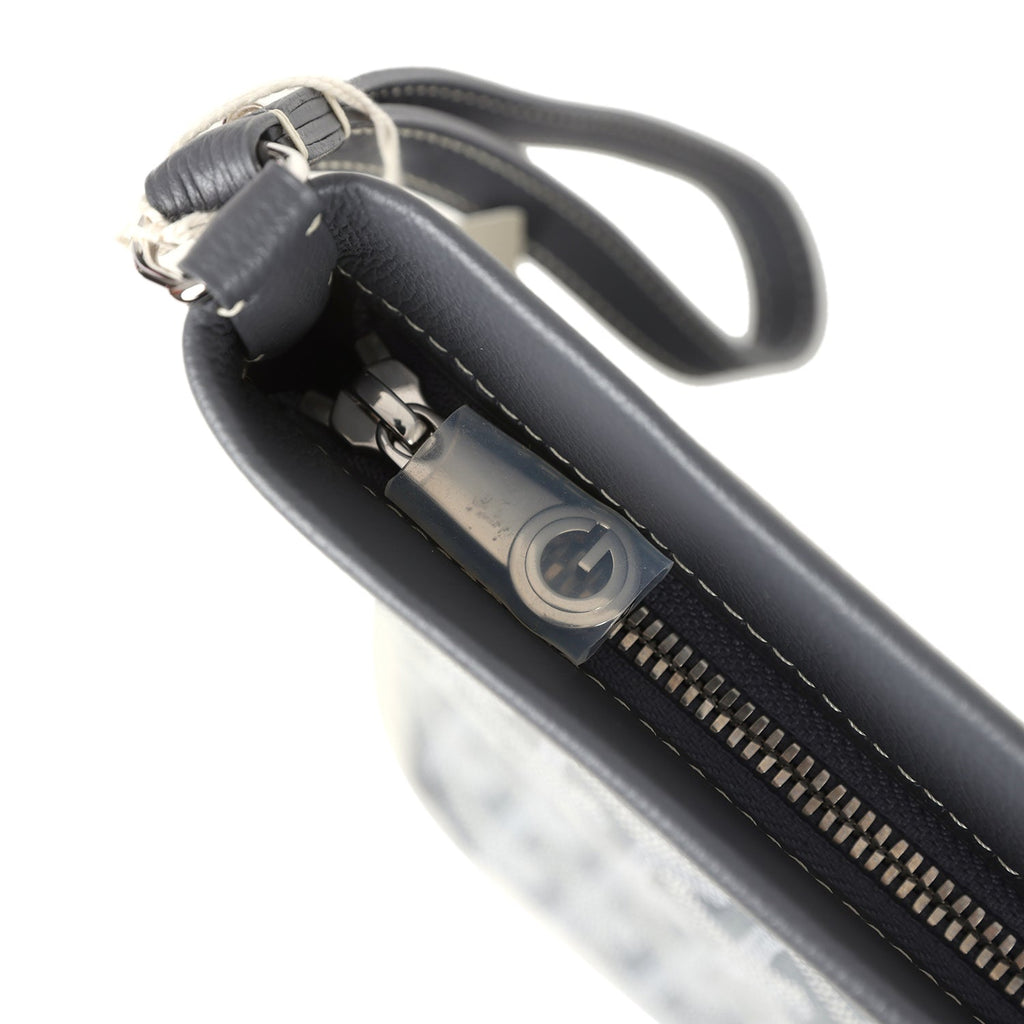 This Goyard Conti Pouch is in grey Goyardine canvas and Chevroches calfskin leather with palladium hardware, featuring contrast stitching, a wristlet strap and zipper closure.The interior is lined in white canvas with no interior pockets.Origin: FranceCondition: New and never wornAccompanied by: Goyard dustbag, carebookMeasurements: 9.5” x 8.6″ x 2.5″; 6″ wristlet strap drop