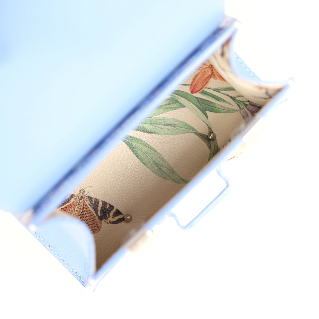 This 2024 Limited Edition Goyard Saigon Structure Nano Bag is in Iris Goyardine coated canvas and chevroches calfskin lining with palladium hardware, contrast stitching, wooden top handle, and a detachable shoulder strap.The interior is lined in multicolored floral printed goatskin lining and has one interior slip pocket on rear wall.Origin: FranceCondition: New and never worn (plastic on hardware)Accompanied by: Goyard box, dustbag, strap, strap dustbag, carebook, ribbon and feltMeasurements: 5.7” x 4.5″ x 2.75″; 2.25″ handle, 18-22″ shoulder strap