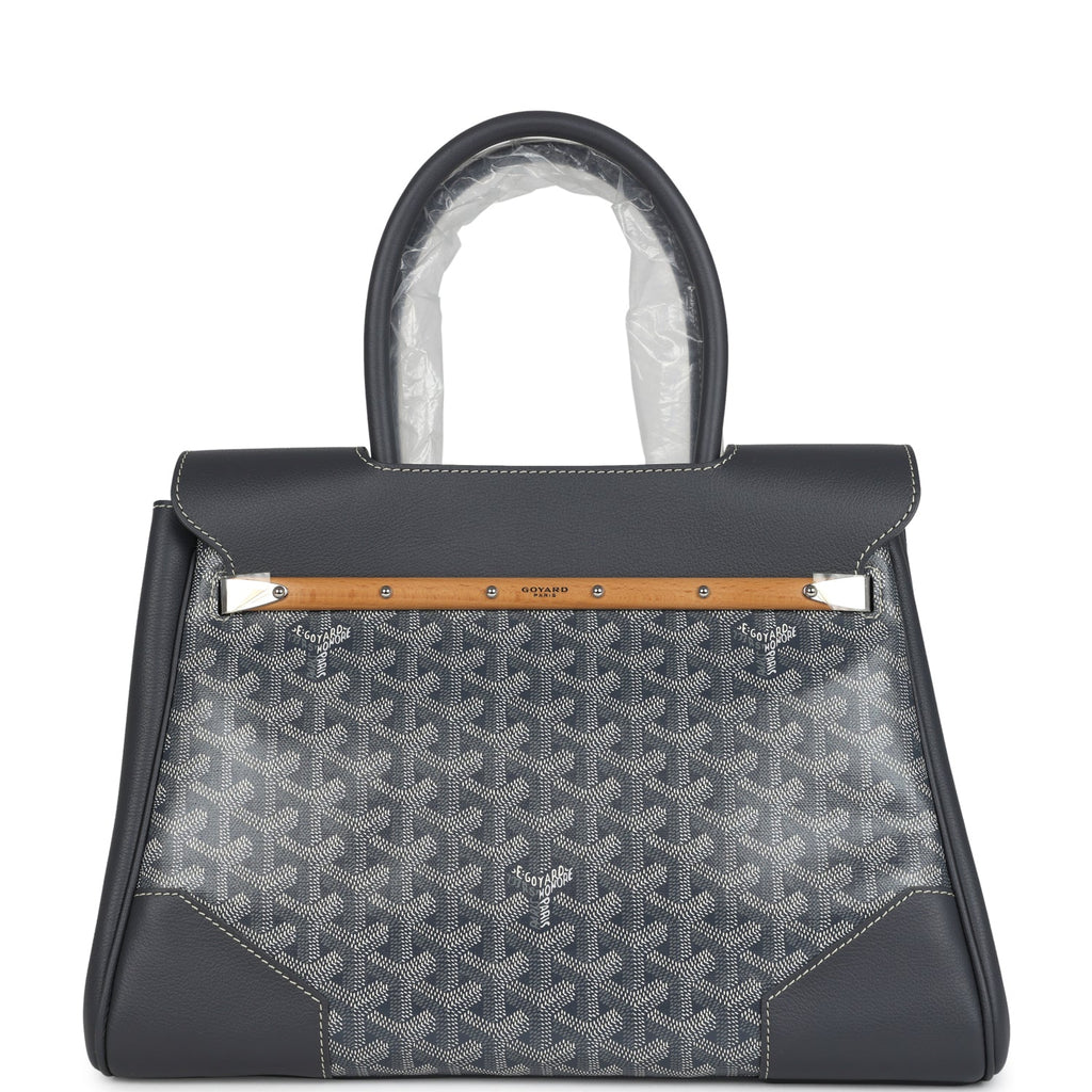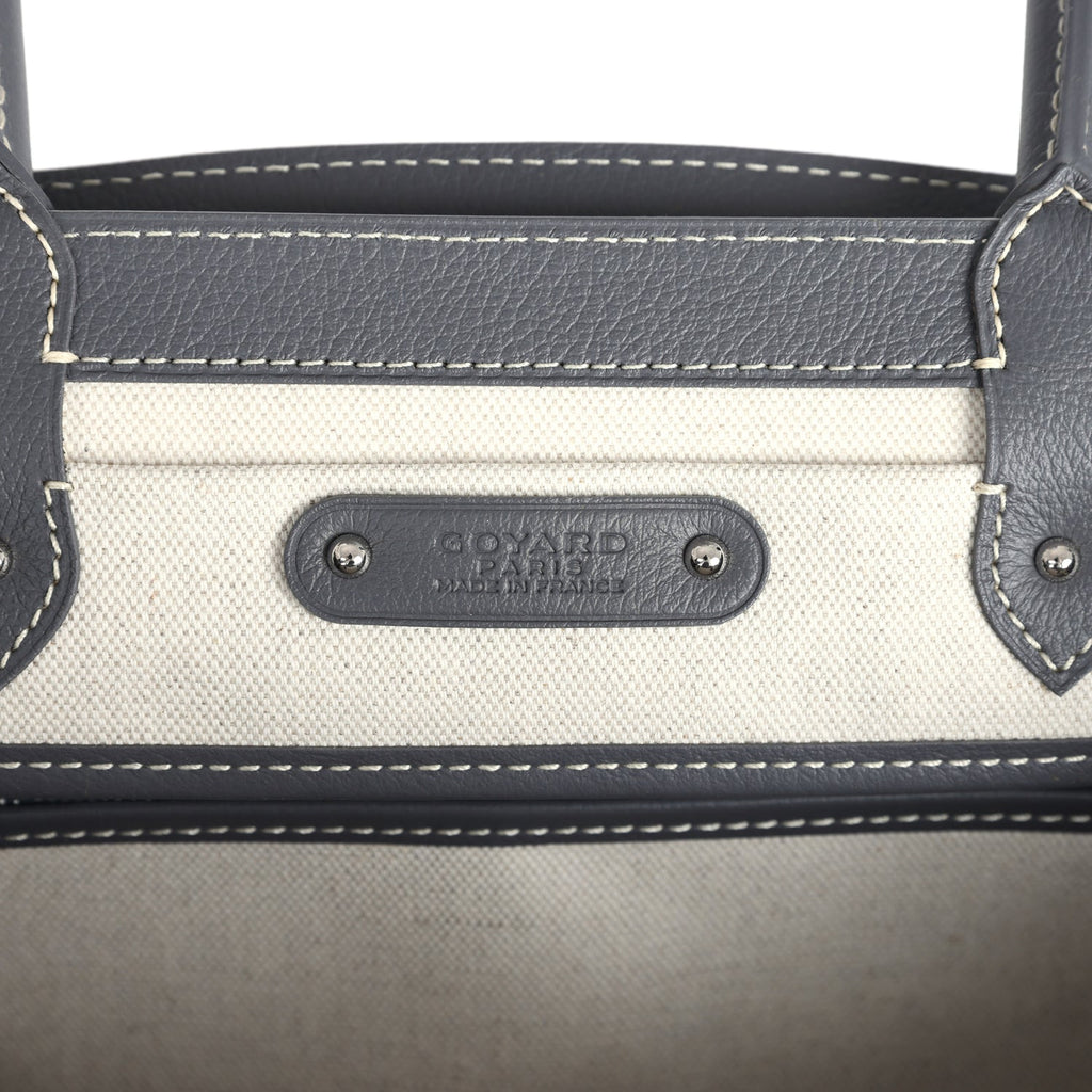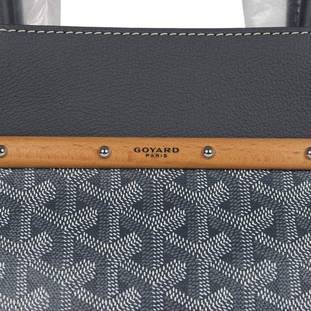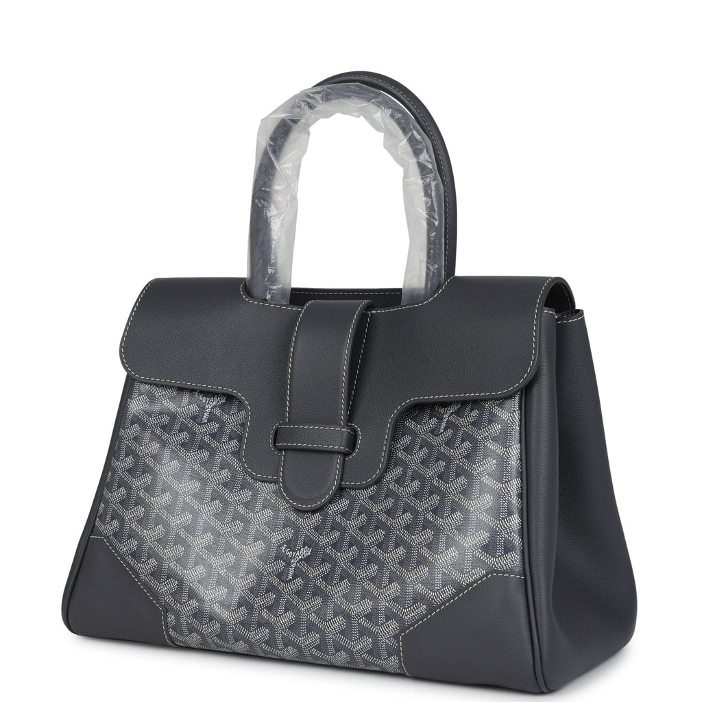 Goyard Saigon Tote Grey Goyardine Canvas Palladium Hardware Shop for an authentic Goyard Saigon Tote in Grey Goyardine Canvas and Chevroches Calfskin with Palladium Hardware in new and never worn condition at Madison Avenue Couture.