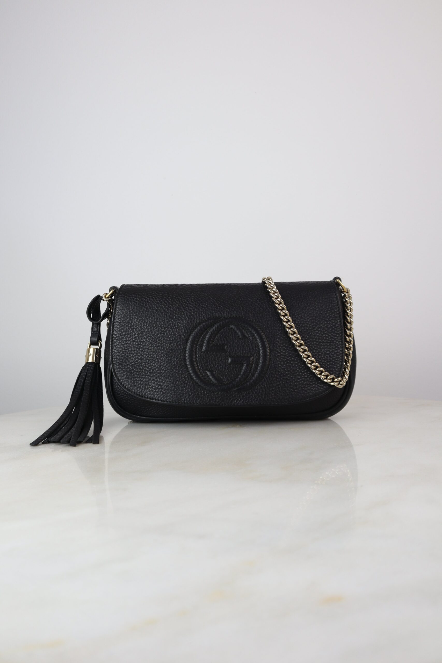Gucci Black GG Soho Flap Crossbody Bag W/ Chain