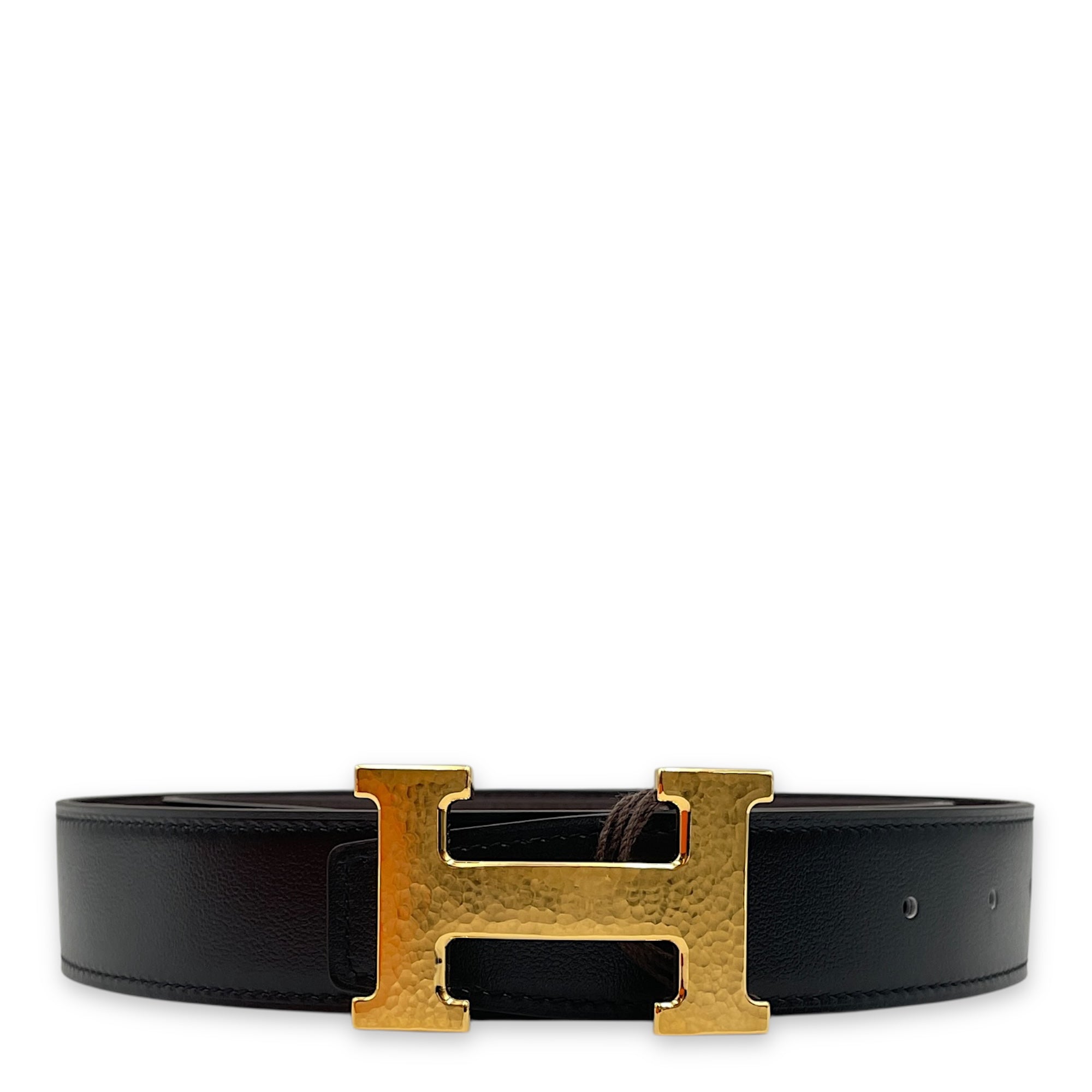 H 32mm x 90cm Black/Chocolate Belt Kit in Togo/Box, Gold hardware