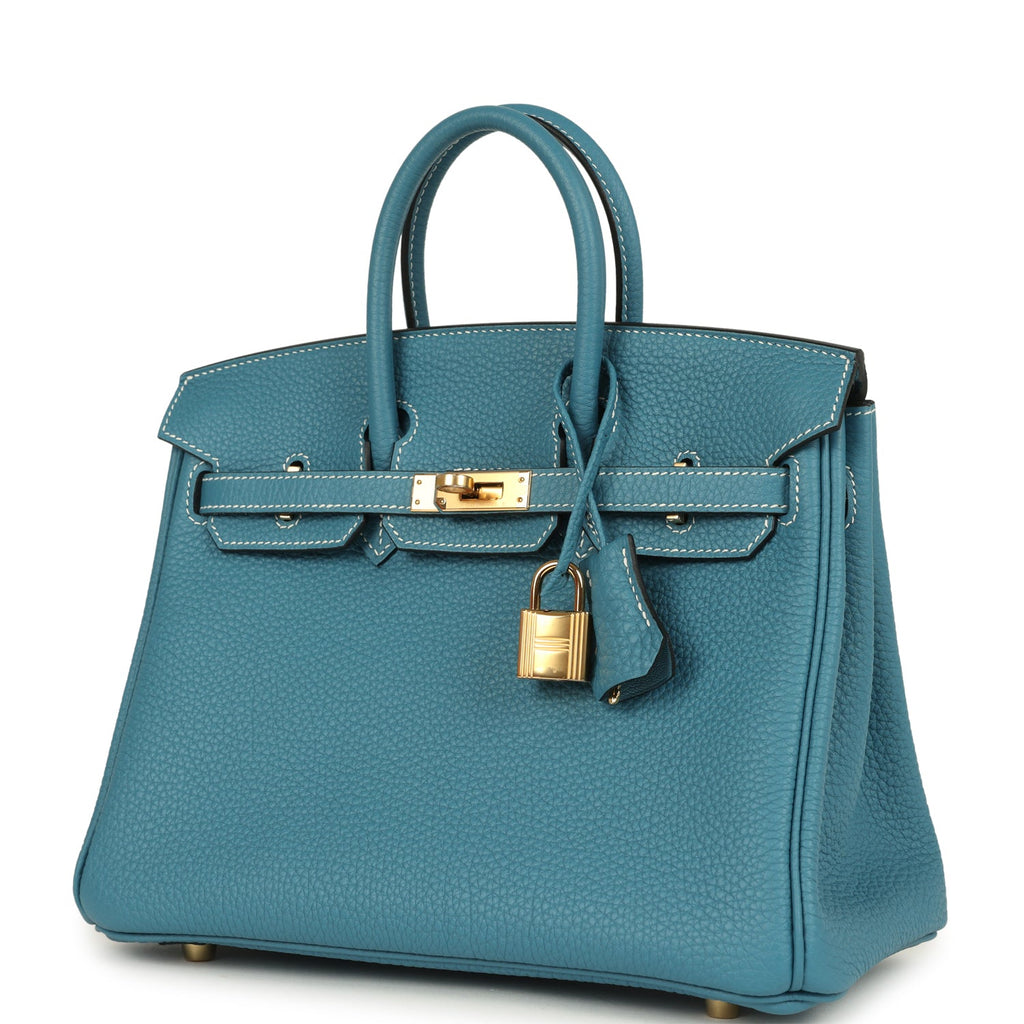 Hermes Birkin 25 Blue Jean Togo Gold Hardware