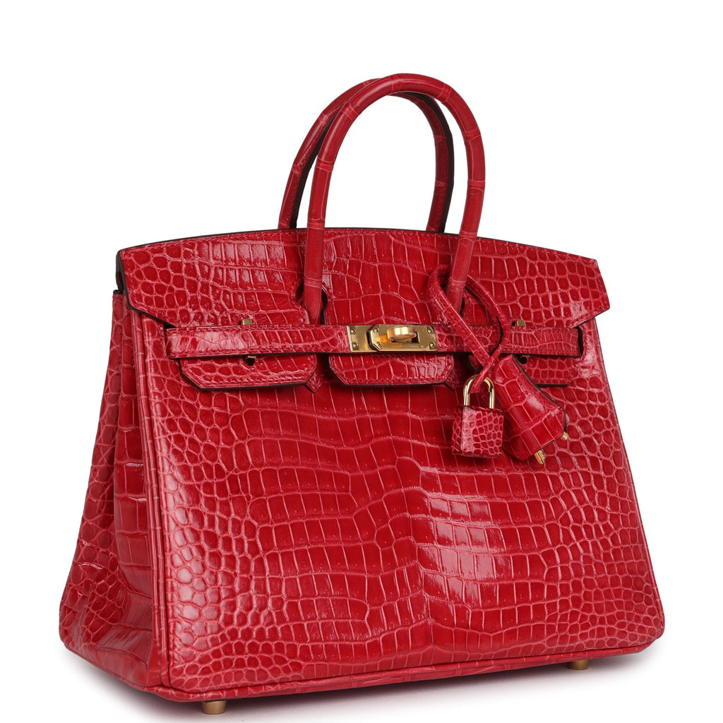 Hermes Birkin 25 Braise Shiny Porosus Crocodile Gold Hardware Shop for an authentic Hermes Birkin 25 in Braise Shiny Porosus Crocodile leather with gold hardware in never worn condition at Madison Avenue Couture.