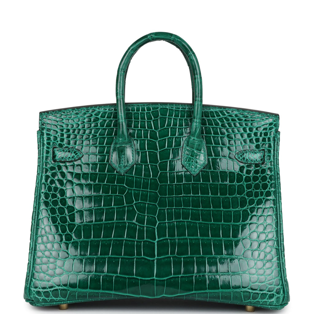 Hermes Birkin 25 Emerald Shiny Porosus Crocodile Gold Hardware Shop for an authentic Hermes Birkin 25 in Vert Emeraude shiny crocodile porosus with gold hardware in never worn condition at Madison Avenue Couture.