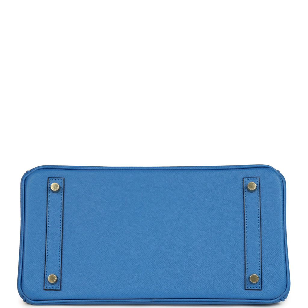 Hermes Birkin 30 Bleu Zellige Epsom Gold Hardware Shop for an authentic Hermes Birkin 30 in Bleu Zelliege epsom leather with gold hardware in never worn condition at Madison Avenue Couture.