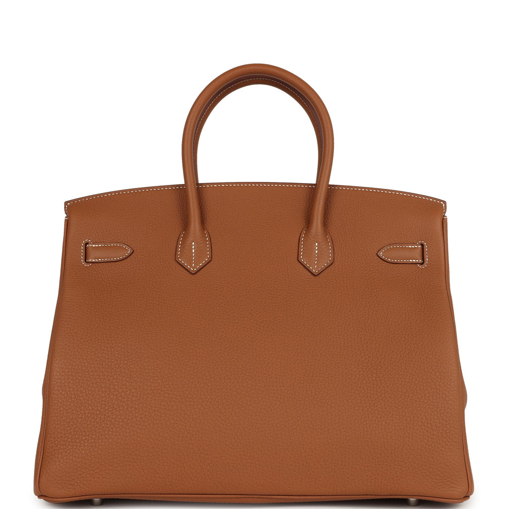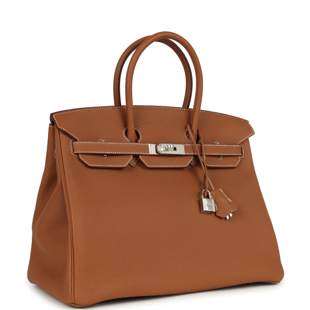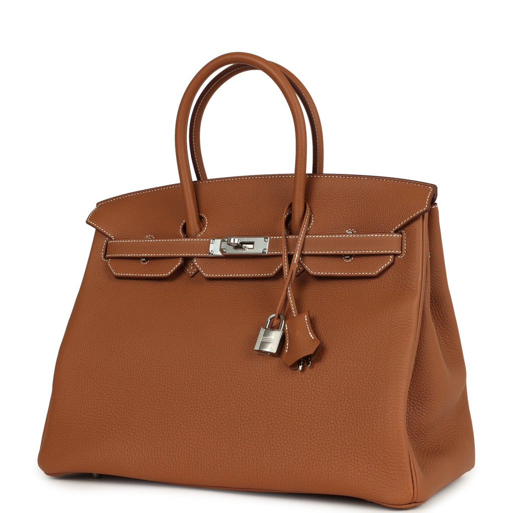 Hermes Birkin 35 Gold Togo Palladium Hardware Shop for an authentic Hermes Birkin 35 in Gold togo leather with palladium hardware in new and never worn condition at Madison Avenue Couture.