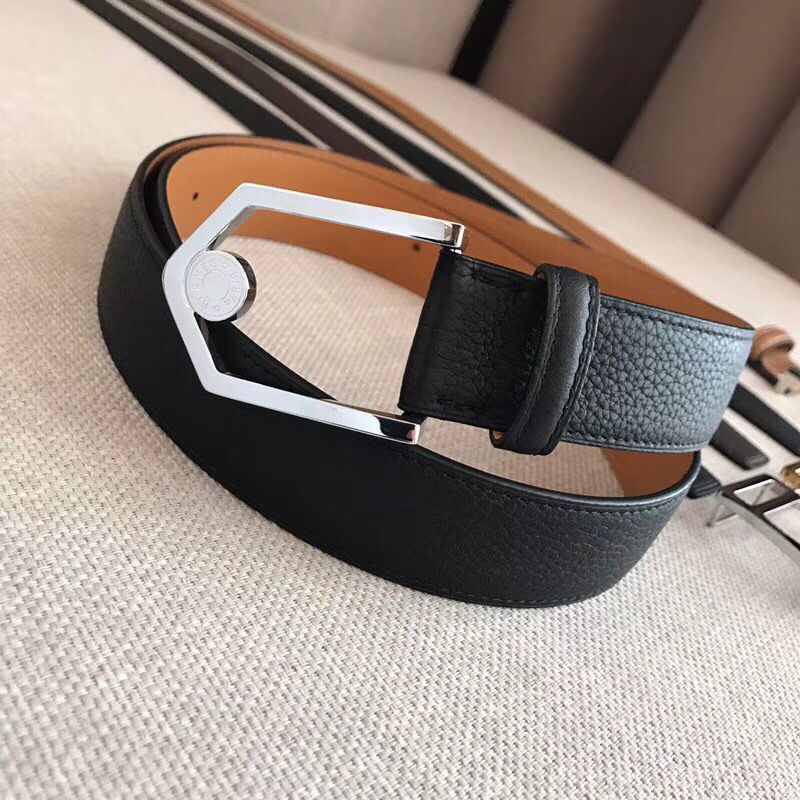 Men’s black Clemence leather Hermes Licol Reversible 40mm belt with contrast stitching and palladium peg-in-hole buckle closure.