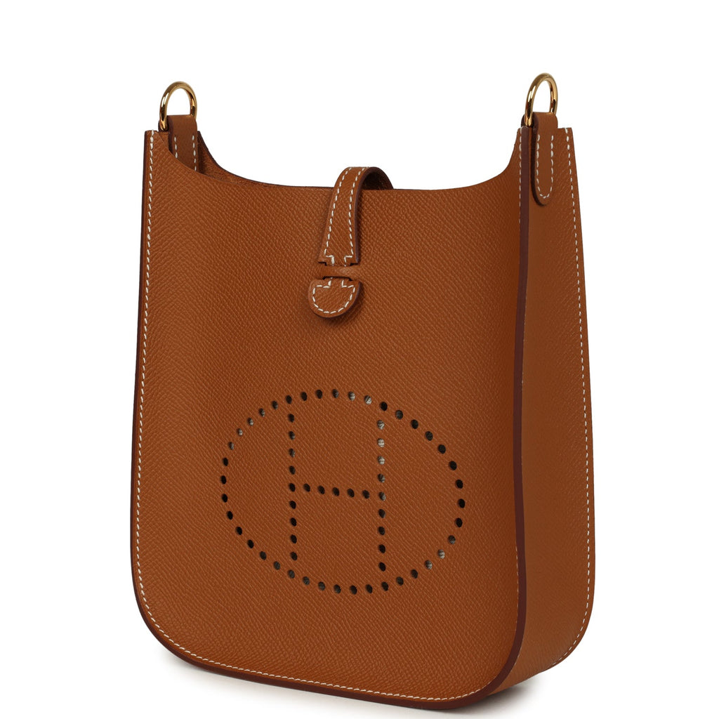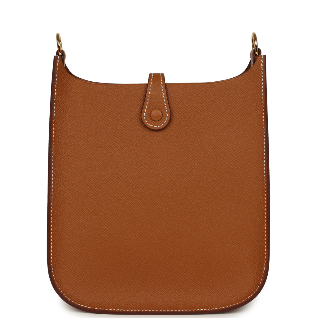 This Evelyne TPM, in the Sellier style, is in Gold epsom leather messenger bag with gold hardware, featuring contrast stitching, large perforated H in circle (front), pull tab snap closure, and a removable Gold epsom leather shoulder/crossbody strap.The interior is lined in natural suede leather.Collection: K (2025)Origin: FranceCondition: New and never worn (plastic on hardware)Accompanied by: Hermes box, Hermes dustbag, removable strap, strap dustbag, carebook, ribbonMeasurements: 6.75″ width x 7″ height x 2″ depth; 23″ strap drop