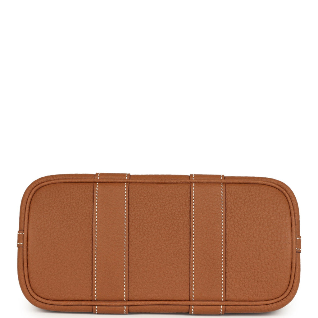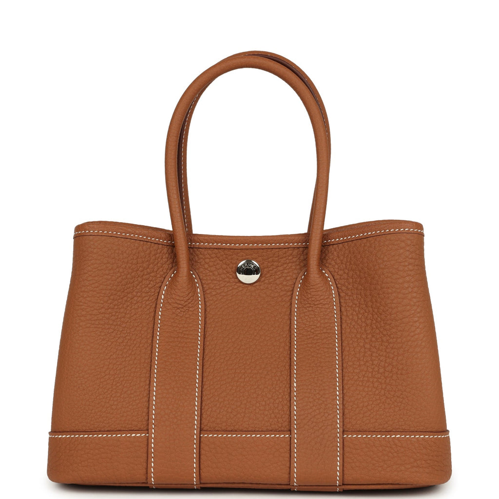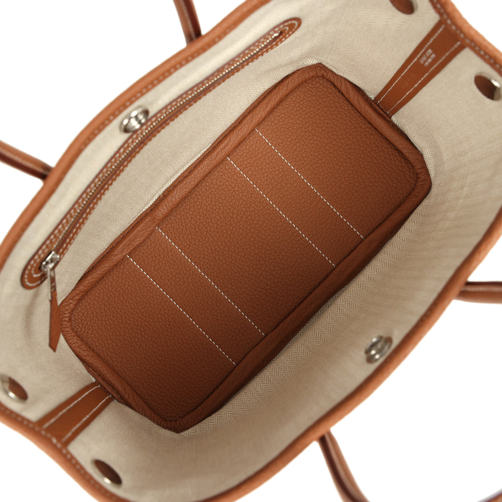 Hermes Garden Party Neo 23 Gold Negonda Palladium Hardware Shop for an authentic Hermes Garden Party Neo 23 in Gold Negonda leather with palladium hardware in new and never worn condition at Madison Avenue Couture.