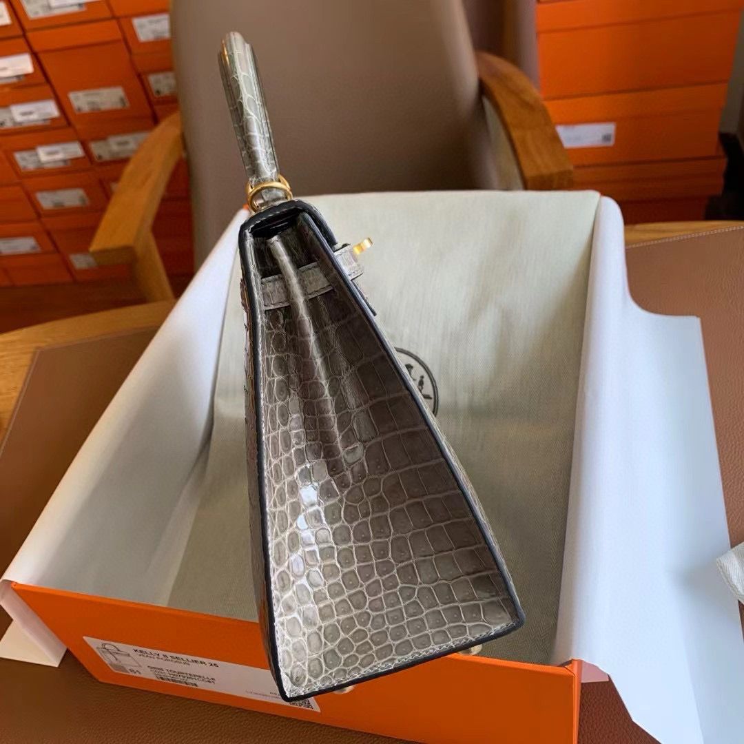 Grace Kelly who used this bag to conceal her pregnancy from the nosy paparazzi, since then the Kelly bag was officially named after her. A very uncommon model – the size 25 cm is just a little smaller than the K28 and is the perfect alternative for rather smaller women. It is possible to identify your bag as being made from Porosus skin by locating ^ symbol somewhere on the finish near the Hermès logo. Make sure to keep away from water and avoid getting it wet.