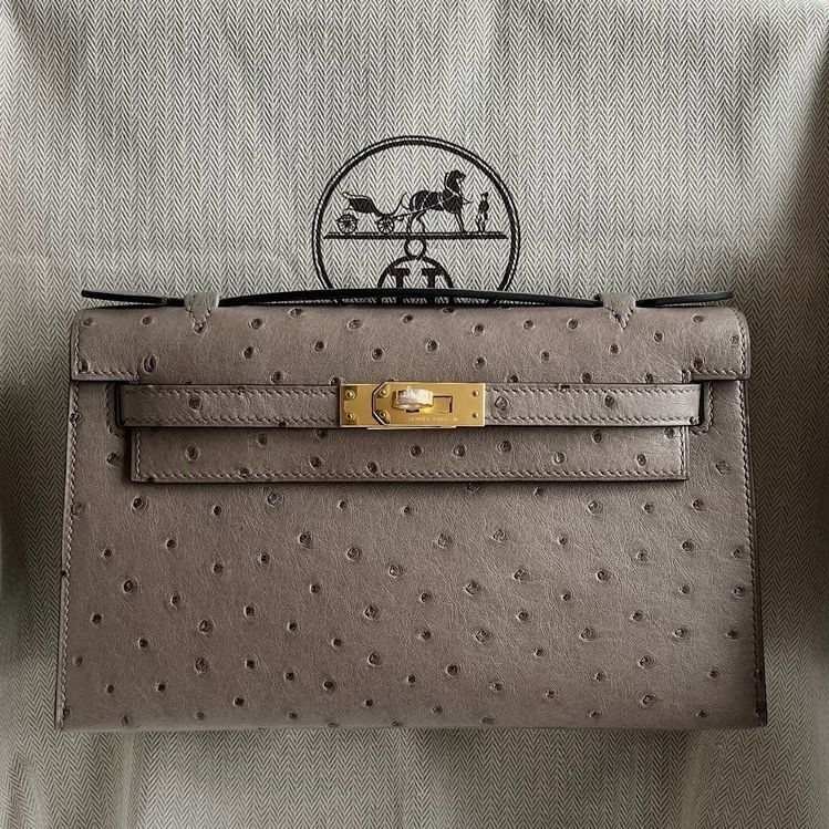 The Kelly Pochette was Jean-Paul Gaultier’s clutch interpretation of the classic Kelly bag. Introduced on the fall runway of his first collection for the House in 2004, the Kelly Pochette was an instant hit. The Kelly Pochette is still produced today, though rarely in Ostrich, making this clutch subtle, but also very impressive. This handbag is made from Lizard leather, this skin is extremely valuable and rare and is processed as little as possible to maintain its natural texture.