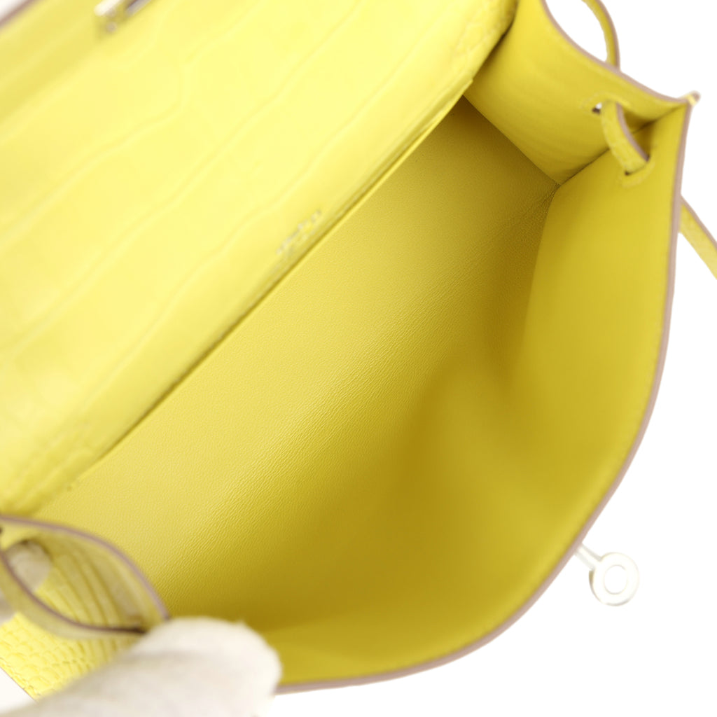 Hermes Kelly Pochette Lime Matte Alligator Palladium Hardware Shop for an authentic Hermes Kelly Pochette in Lime Matte Alligator Mississippiensis with palladium hardware in new and never worn condition at Madison Avenue Couture.