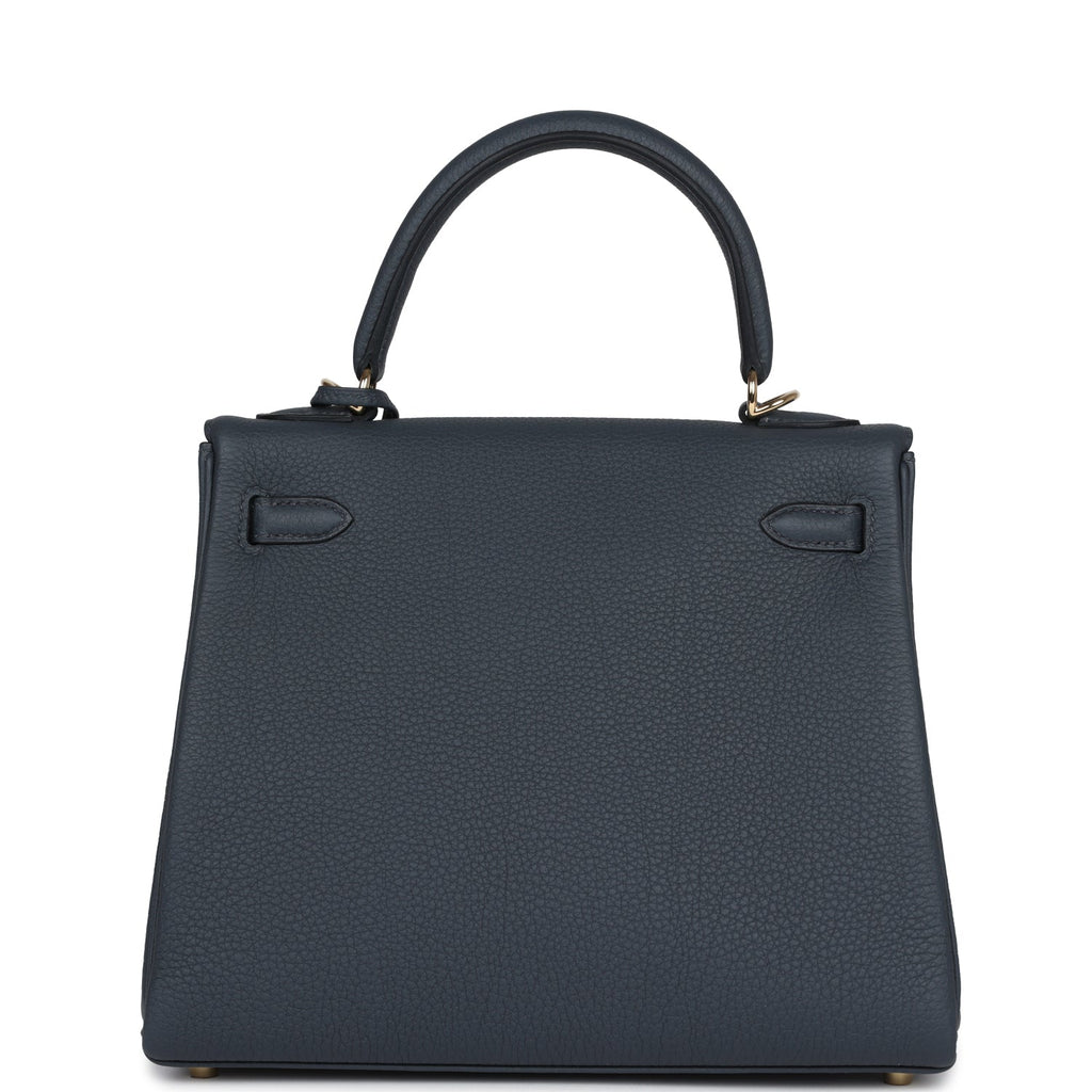 Hermes Kelly Retourne 25 Gris Misty Togo Permabrass Hardware Shop for an authentic Hermes Kelly Retourne 25 in Gris Misty togo leather with permabrass hardware in new and never worn condition at Madison Avenue Couture.